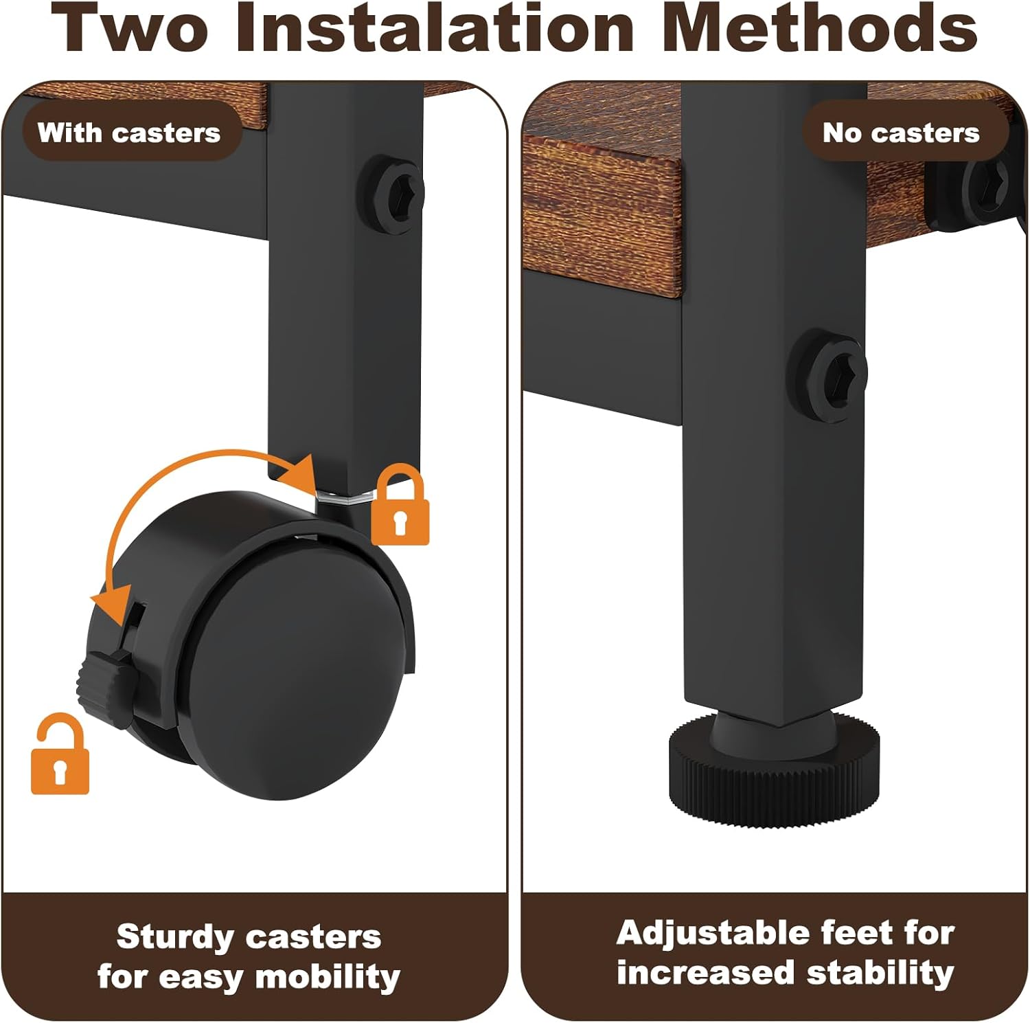 - Two Installation Options: The printer table can be used with or without wheels.Not only does it make it easy to move the printer around without having to manually lift it, but it also makes it easy to clean underneath the printer stand.
