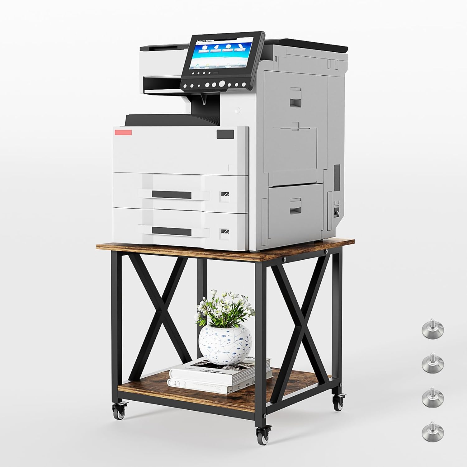 - 【Wheels and Feet Included】 Featuring industrial wheels, this printer cart glides smoothly even when fully loaded or used on carpet. All four wheels come with foot-operated brakes, so you can lock the cart in place effortlessly. Included anti-slip pads can be fine-tuned on uneven floors, ensuring the printer stand stays stable and wobble-free at all times.