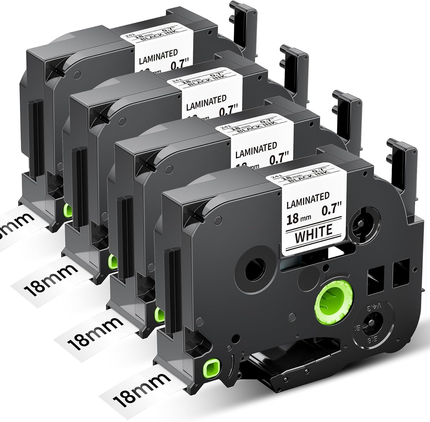 - 4-Pack Premium Tape: Contains 4 rolls of replacement for Brother P-touch label tape tze-241 (TZ-241 TZ241). Size:18 mm(3/4") × 8m(26.2'), Color: Black on White