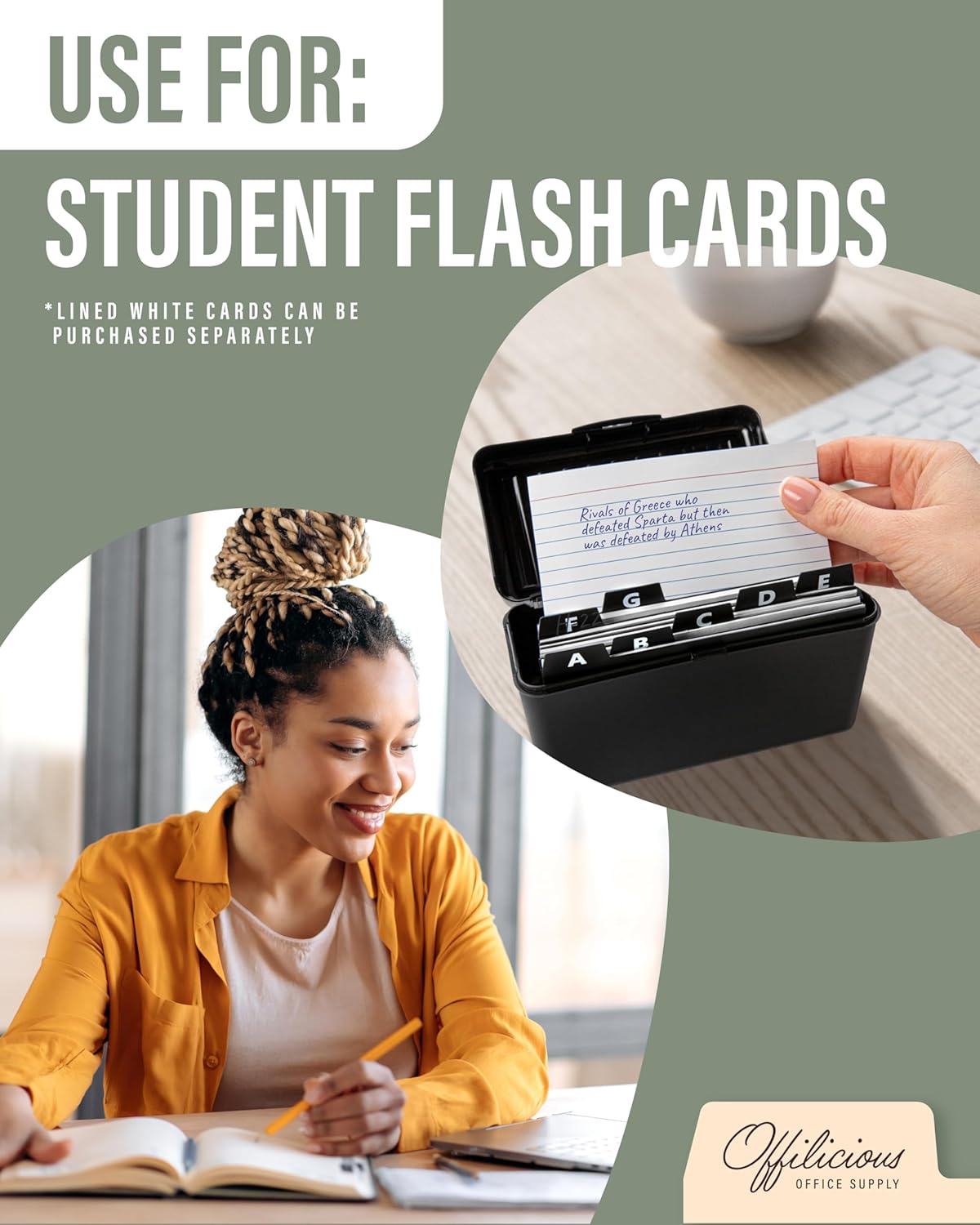 - MULTIFUNCTIONAL INDEX CARD STORAGE SOLUTION: Offilicious 3x5 card holder case is perfect as a recipe card holder, address manager, password library, flashcard organizers, notecard holder, or any other index card storage solution.