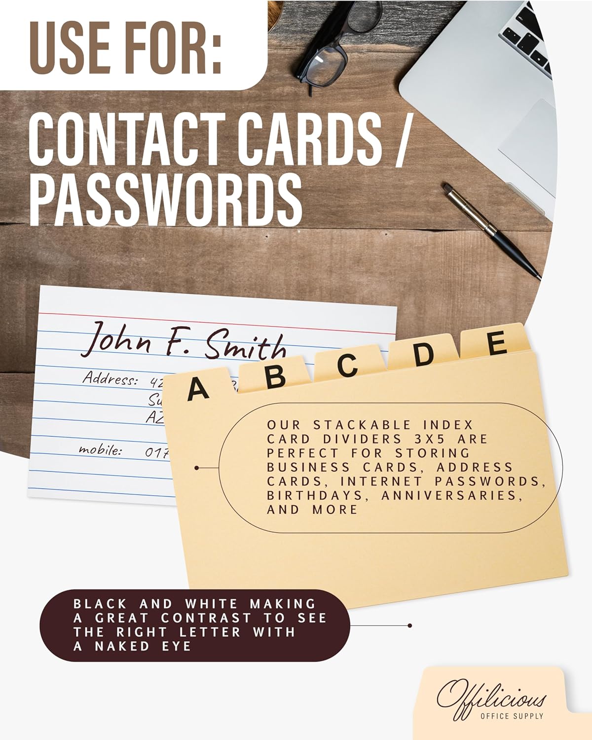 - MANILA DIVIDERS FOR EASY SORTING OF INDEX CARD CASE: 25 manila 3x5 index card dividers with tabs make it easy to create sections, categorize your notes, and flip through contents quickly while using Offilicious index card file box.