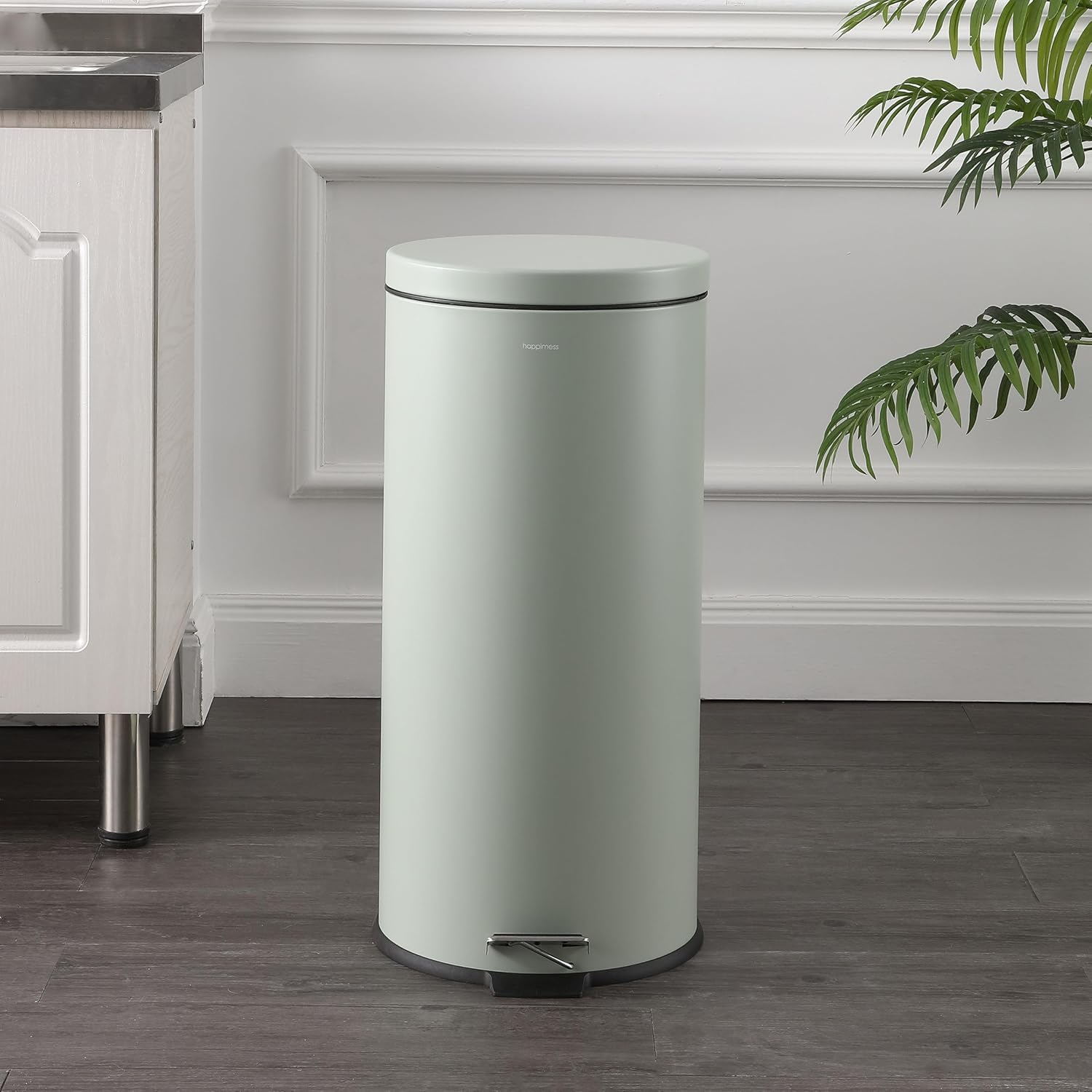 happimess HPM1000C Oscar 8-Gallon Step-Open Trash Can with Free Mini Trash Can, Modern, Fingerprint Proof for Home, Kitchen, Office, Large:7.9 Gallon Small:1.3 Gallon, Pistachio Gelato