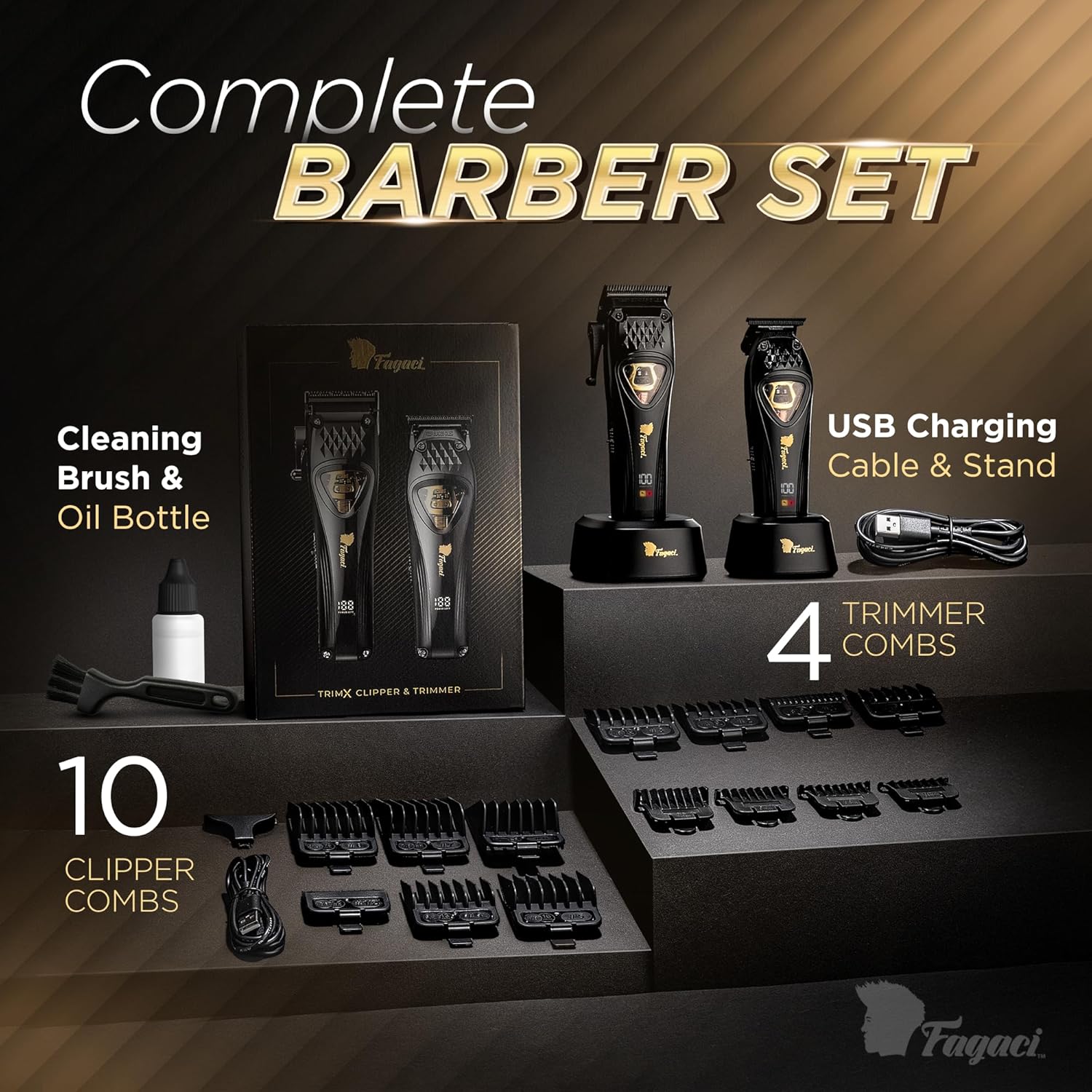 Fagaci Professional Hair Clippers for Men with DLC Blades and High Torque Vector Motor, Barber Clippers and Trimmers Set Zero Gap, 12000 RPM Hair Cutting Kit, Mens Haircut Cordless Clipper for Barber