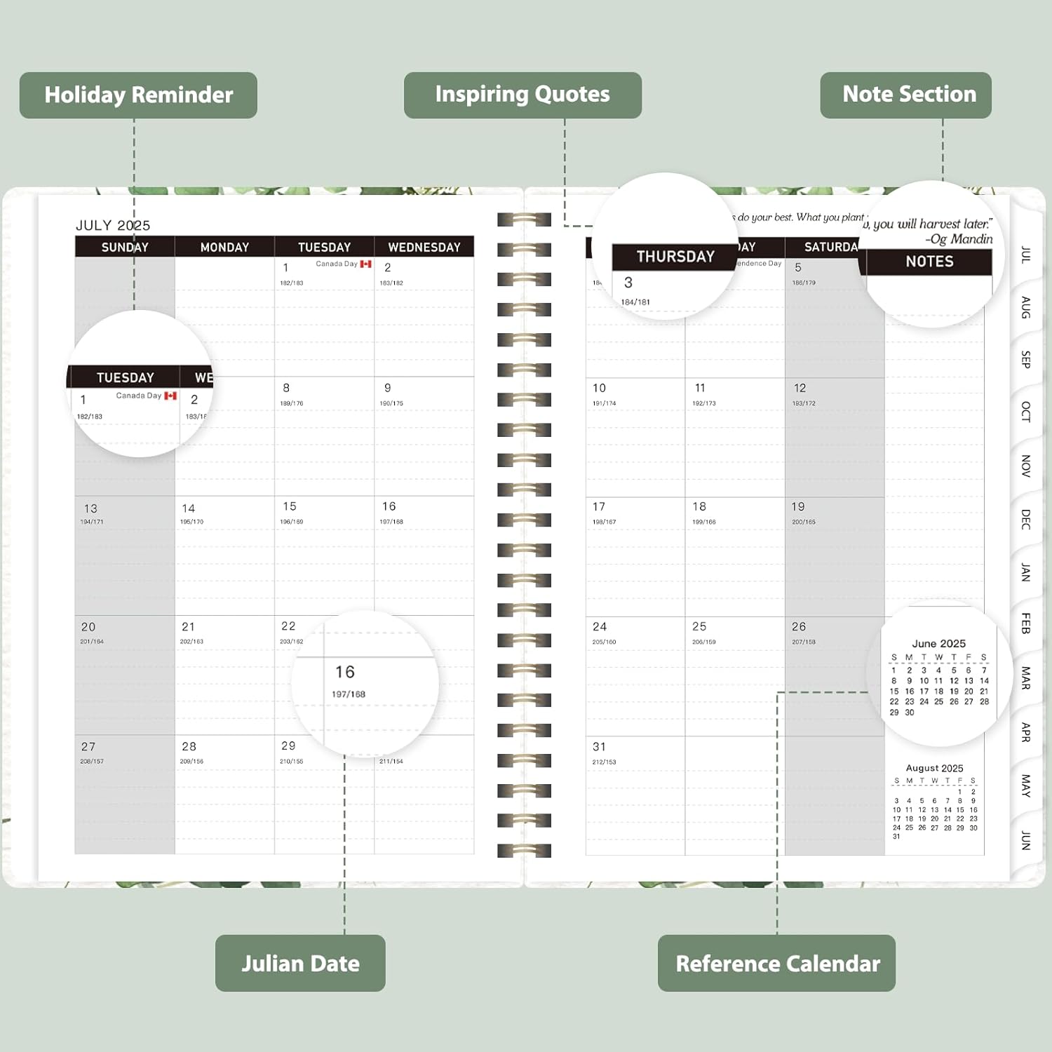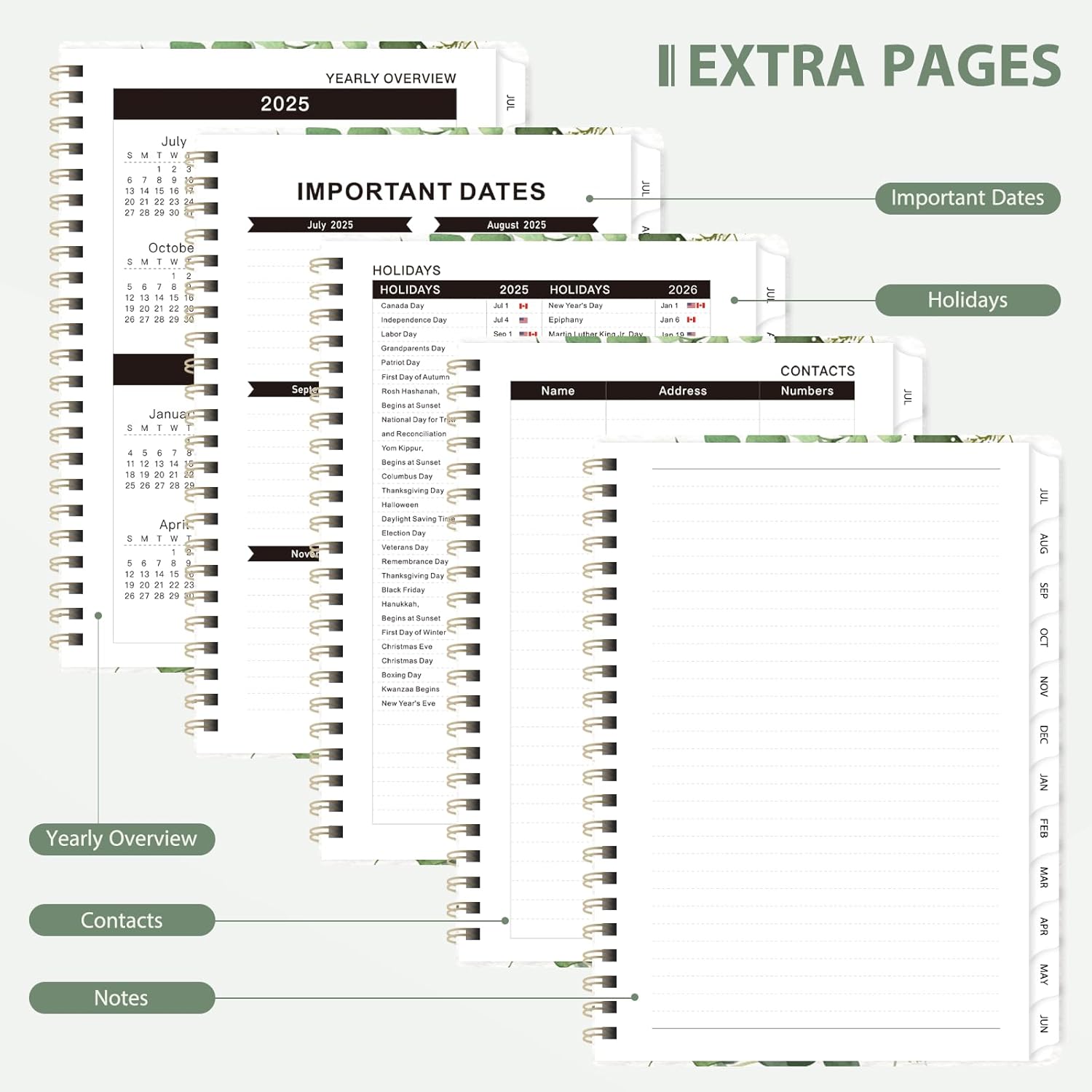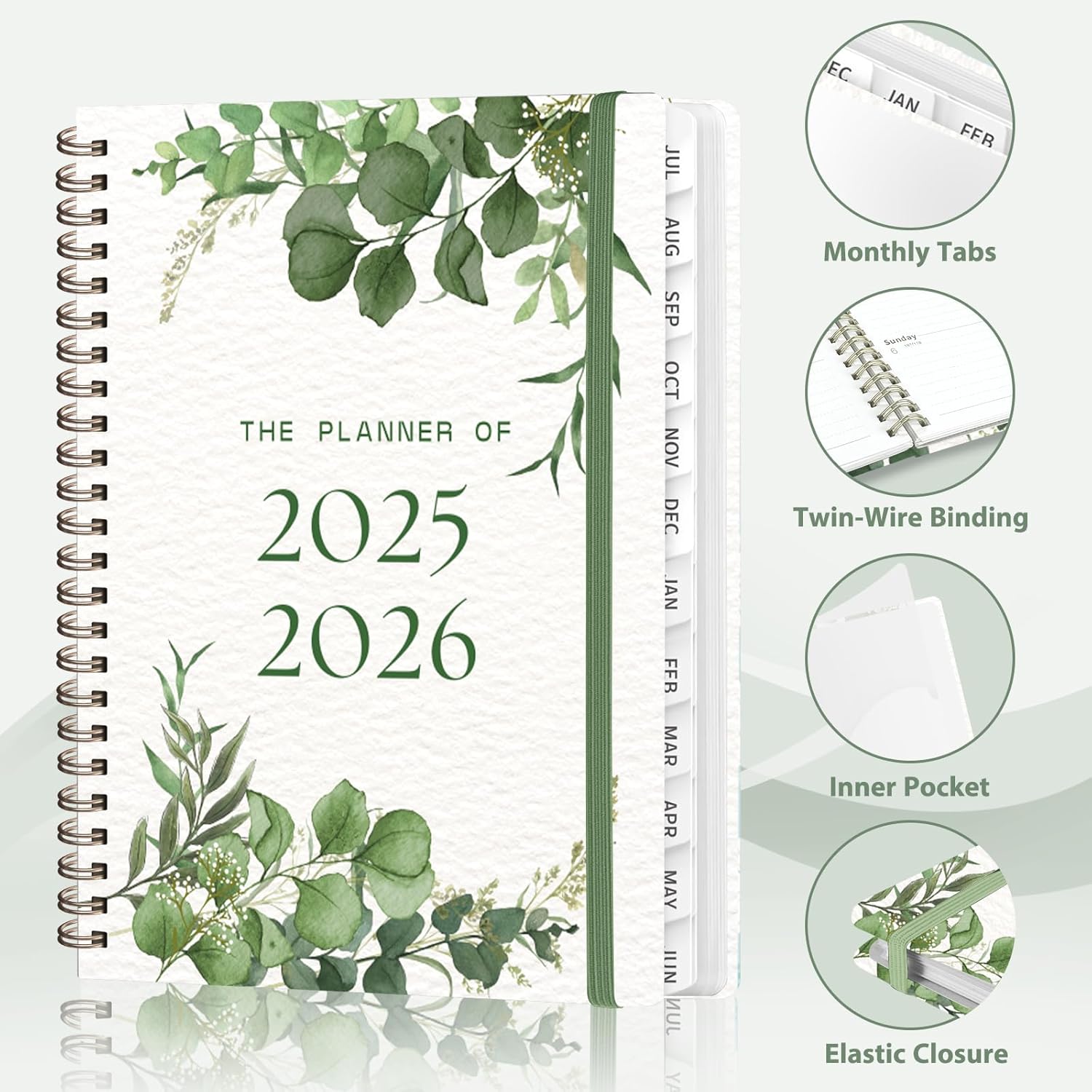 - [THOUGHTFUL DESIGN] β Printed on FSC-certified wood-based paper, our 2025-2026 calendar planner combines sustainability with smart organization. It features an elastic closure to keep it securely closed, monthly tabs for easy access, and a clear double-sided pocket for extra storage. Plus, each monthly page includes an inspiring quote to keep you motivated and focused.