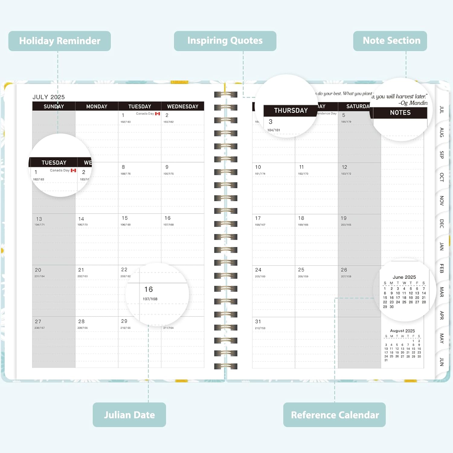 Planner 2025-2026 for Women & Men, Weekly and Monthly Calendar Notebook (July 2025 - June 2026), Hardcover Spiral Bound School Teacher Student Planner with Tabs, Inner Pocket, A5 (6.3" x 8.5")