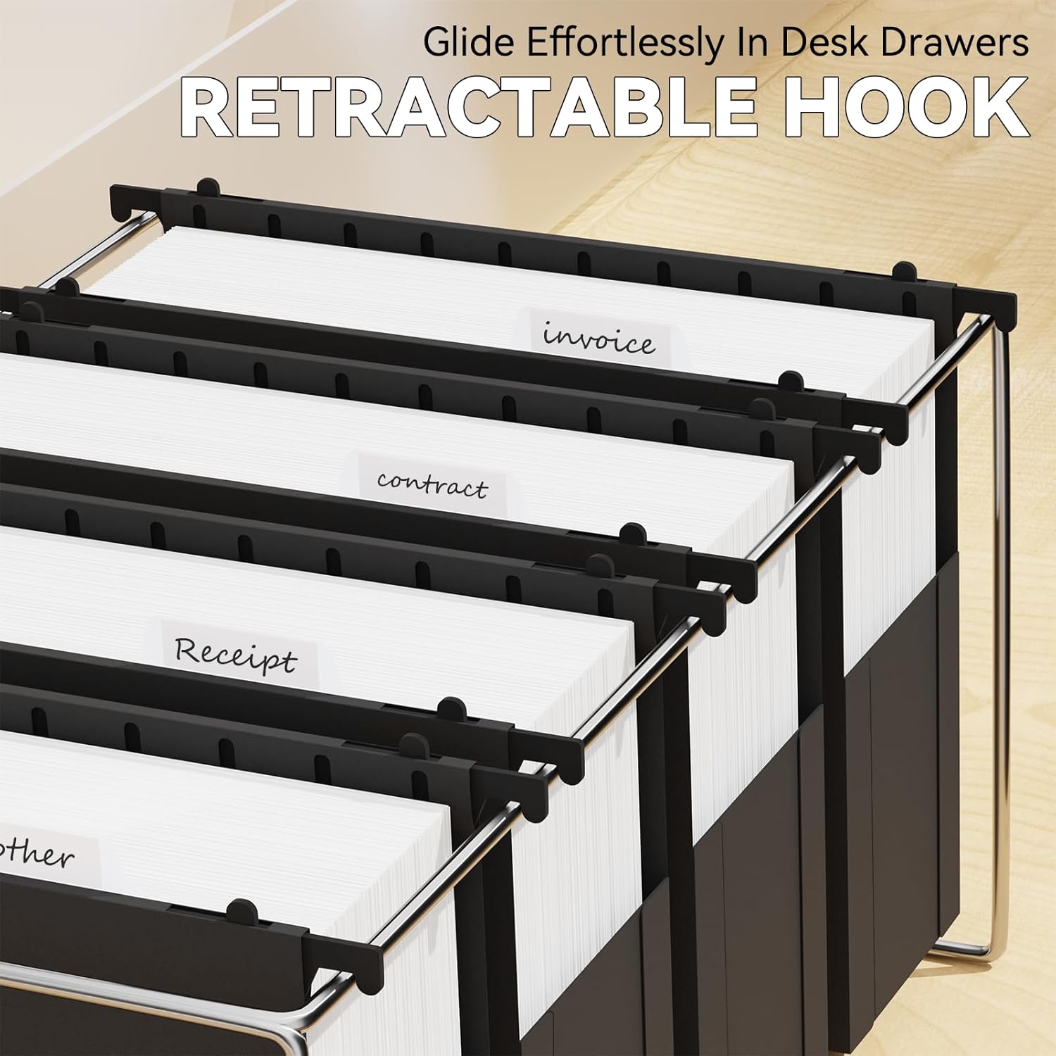 - 【RETRACTABLE HOOK】:Thickened and durable telescoping slides glide effortlessly in desk drawers、file cabinets, and file boxes.Durable telescopic hooks can bear heavy documents for a long time without deformation.