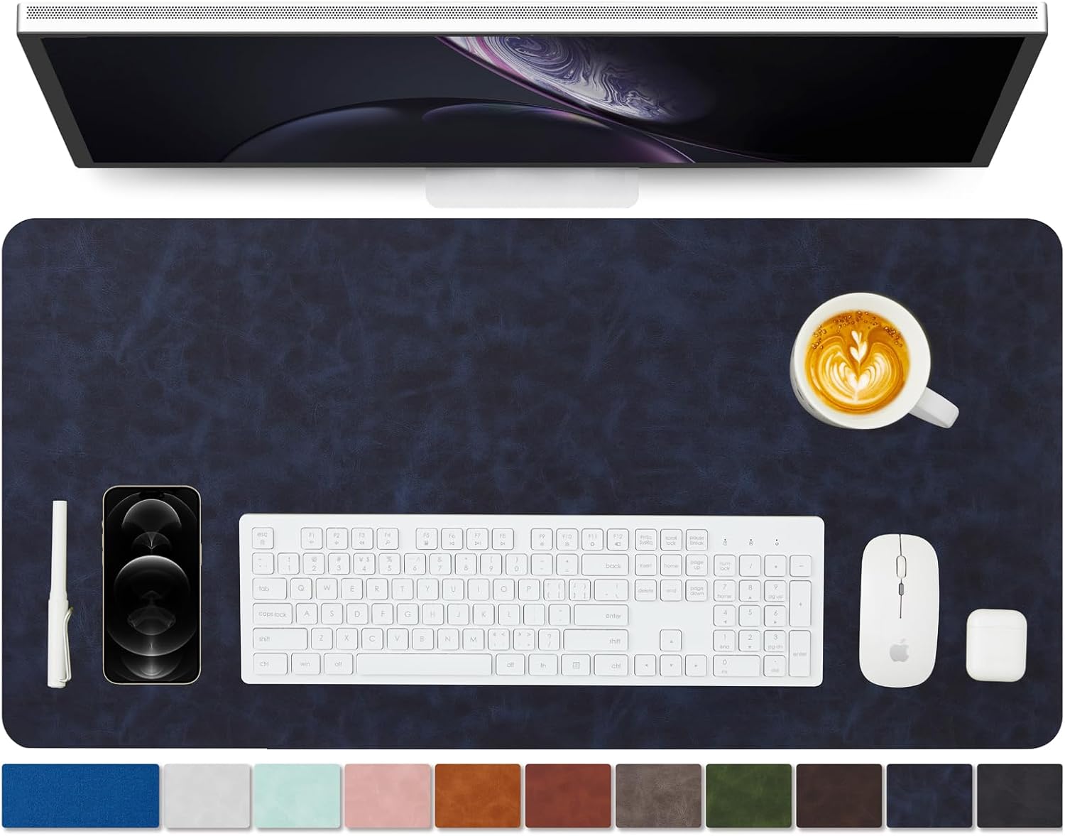 Distressed Leather Desk Mat - Non-Slip PU Desk Pad for Office and Home - Desk Organization and Accessories - Ideal for Large Mouse Pad and Desk Mats on Top of Desks(Navy Blue,31.5"x 15.7")