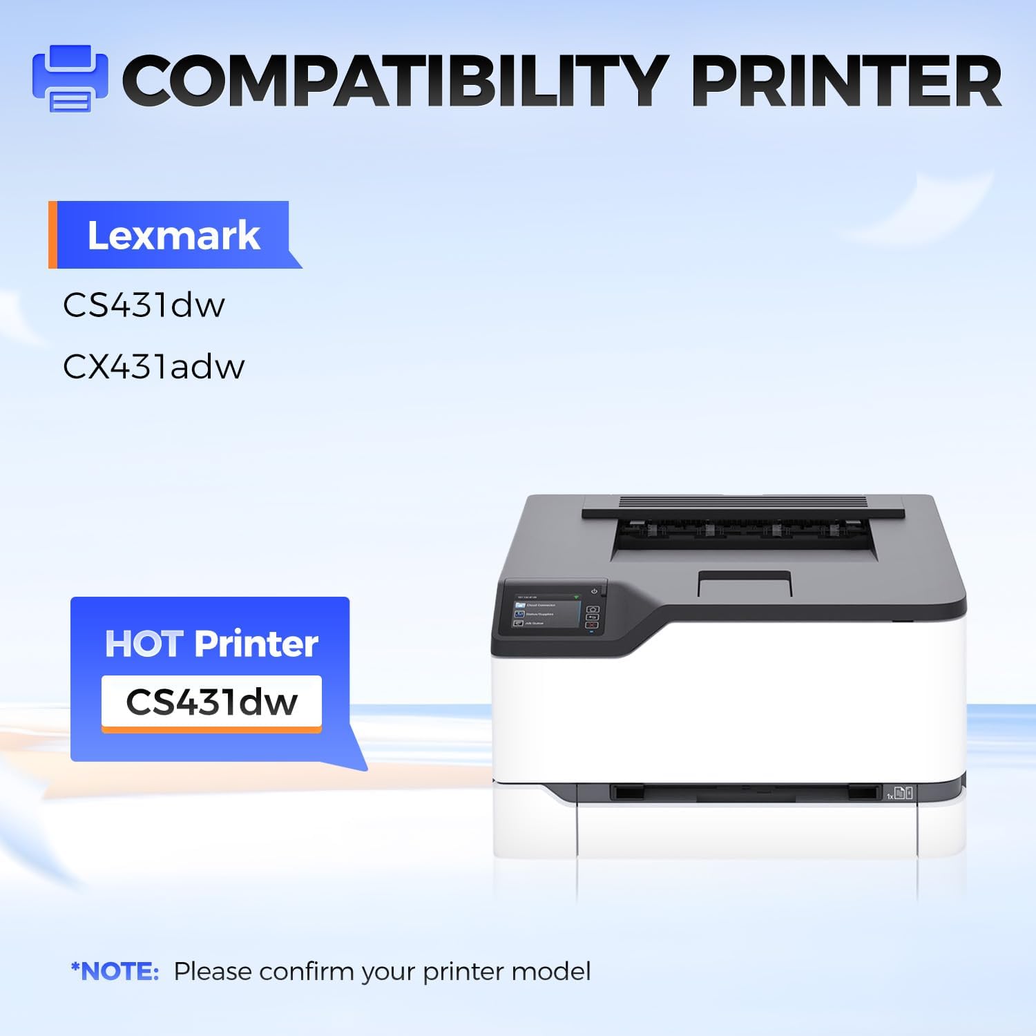 - Compatible Printer: Compatible with Lexmark Color CS431dw, CX431adw CS431 CX431 Laser Printer.