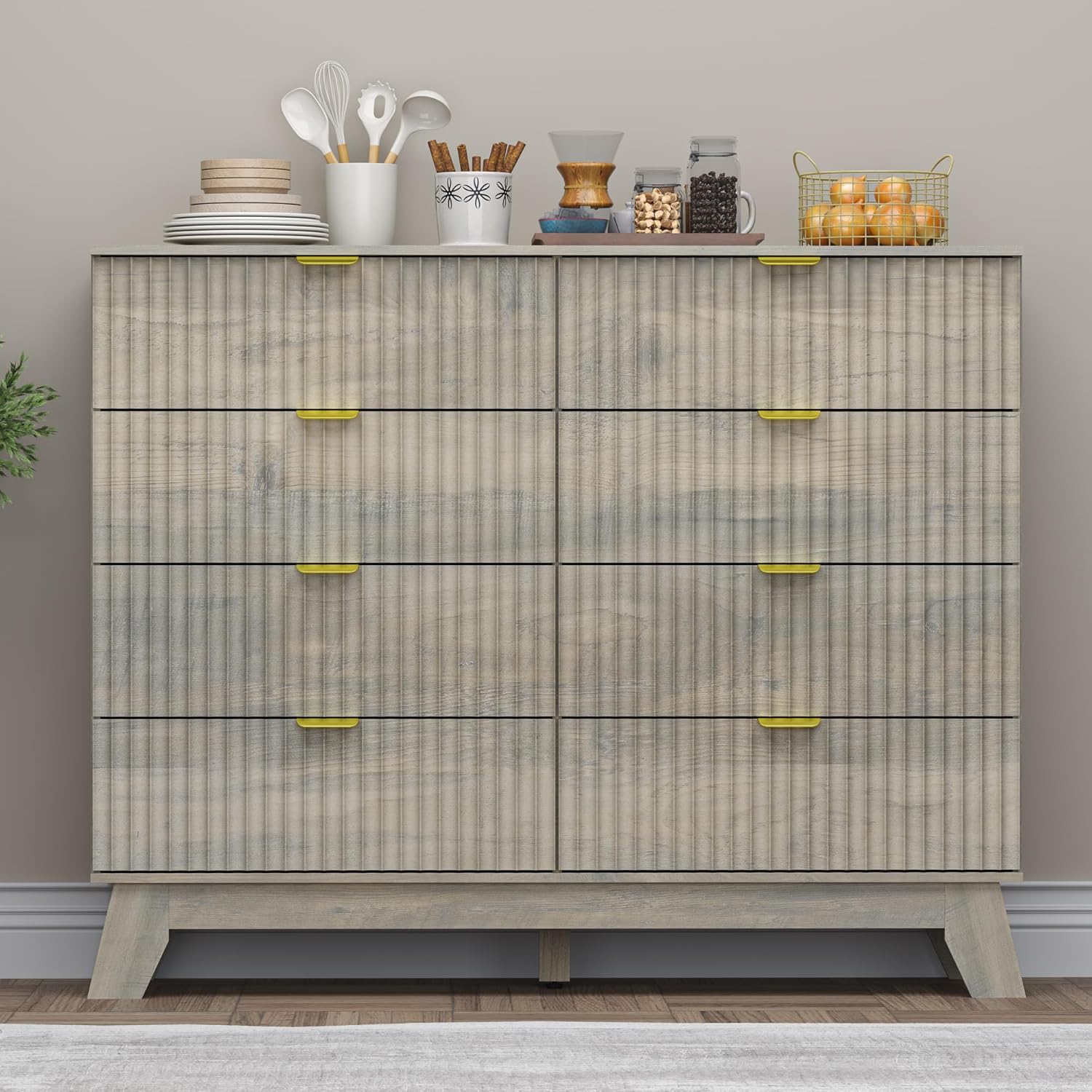 Fluted 8 Drawer Tall Dresser, 47.2" Wide Modern Boho Chest of Drawers, Wooden Storage Dresser TV Stand for Bedroom, Living Room, Closet, Hallway, Curved Profile Design