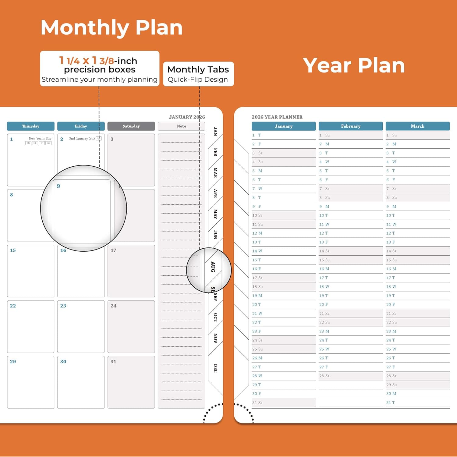 - Thoughtful Design: The monthly tabs on the side of the agendas planner can easy locate the current date; the tear off design and bookmark rope make it easy to flip through the medium planner. The last page of the 2026 college planner has an expanded inner pocket that has a small space for storage of cards