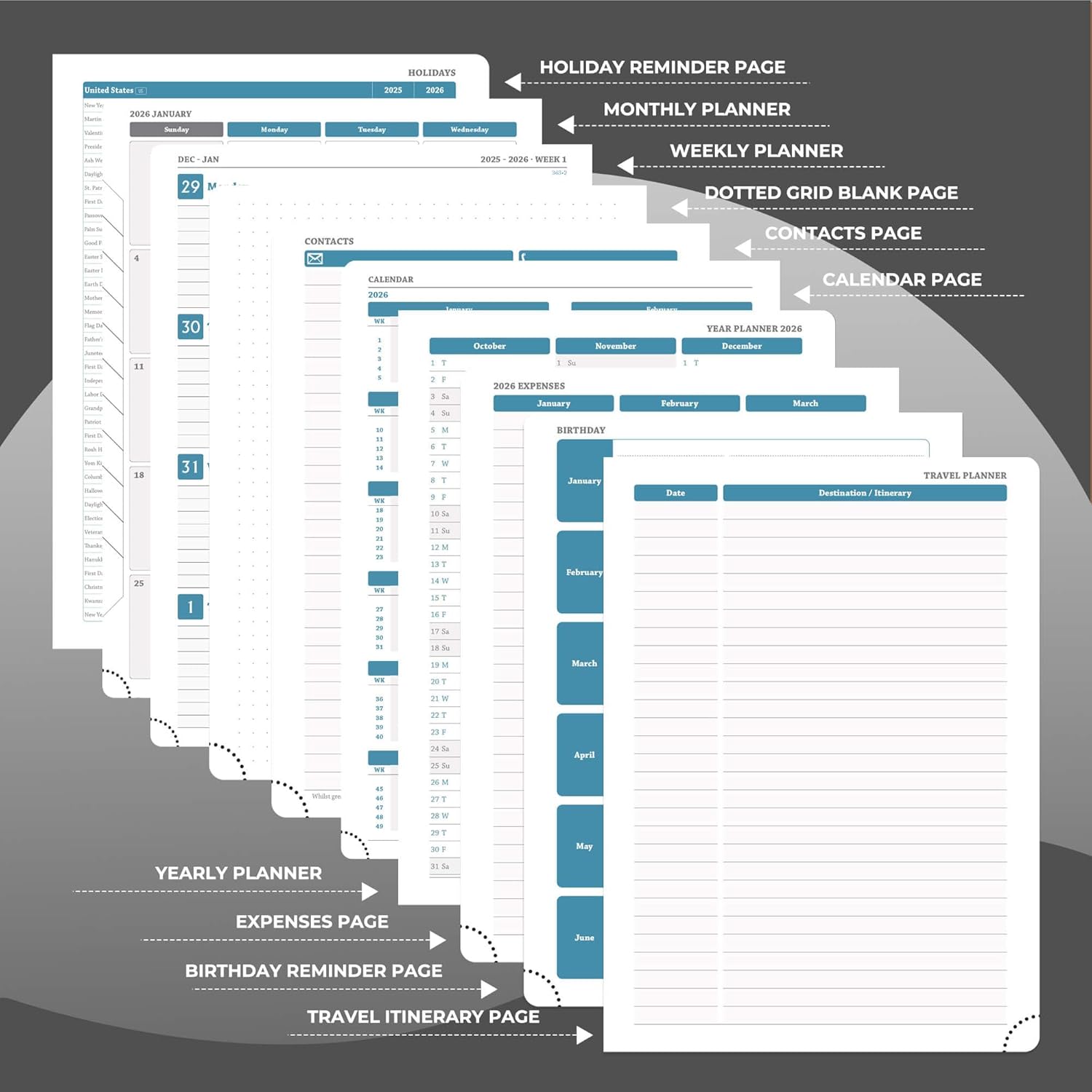 • Universal Design Planner: Suitable for a variety of people and scenarios. Professionals manage project progress, meeting arrangements and goals; student planner 2026 courses, exams and extracurricular activities; home users arrange travel, activitie