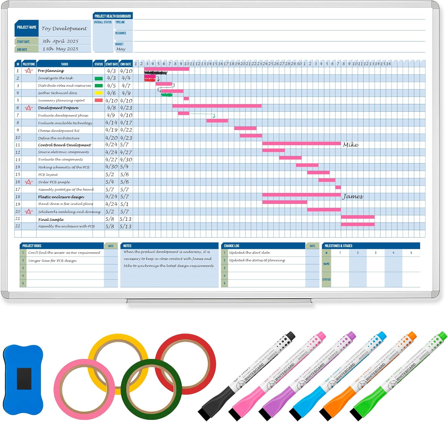 Business Gantt Chart Board – 40"x24" Professional Project Management Whiteboard with Tapes & Markers