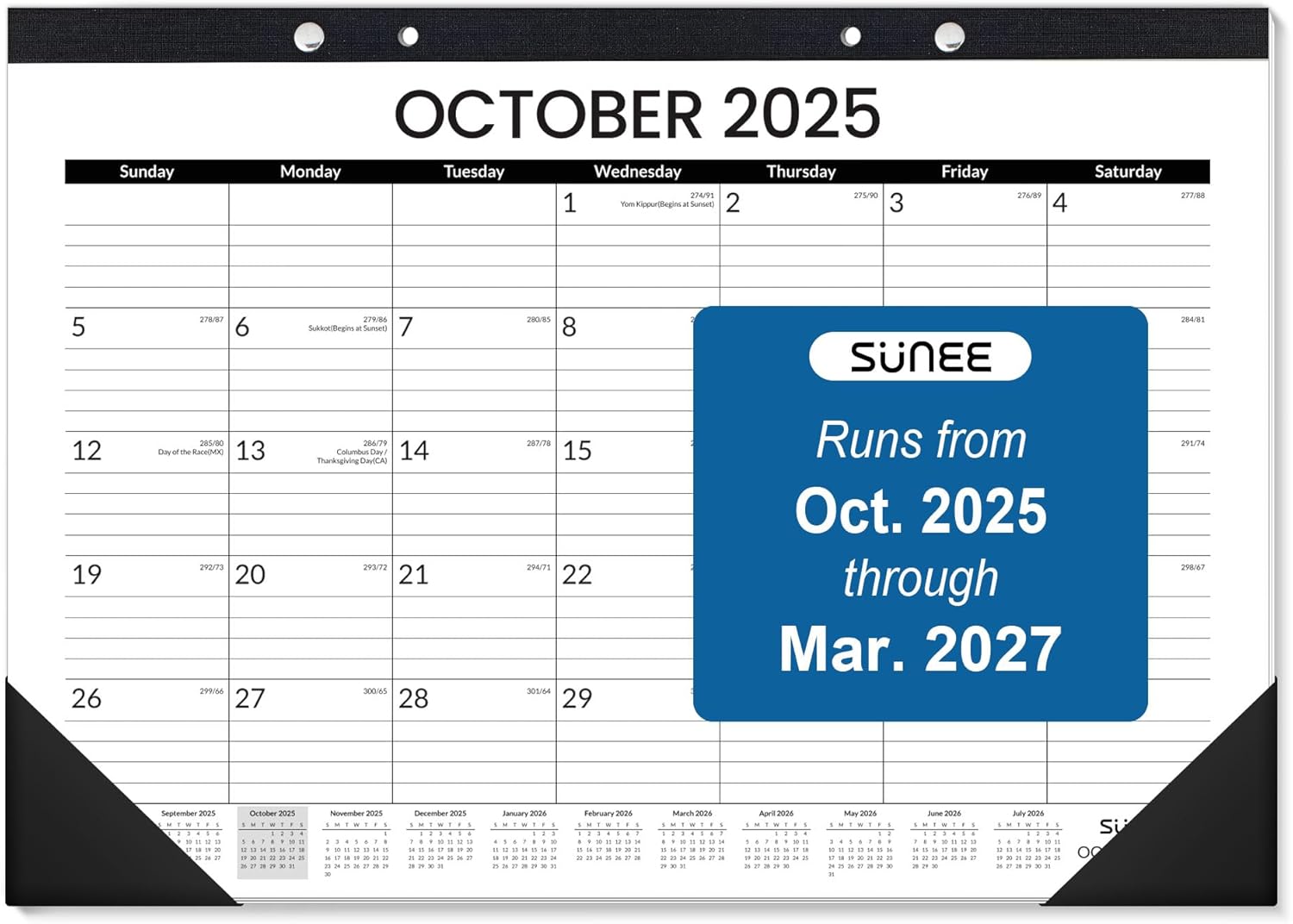 SUNEE Desk Calendar 2025-2026, 18 Months from Oct. 2025 to Mar. 2027, 17"x12" Academic 2026 Calendar for Home, School, or Office Desk Top Organizing, Black Monthy Calendar 2026