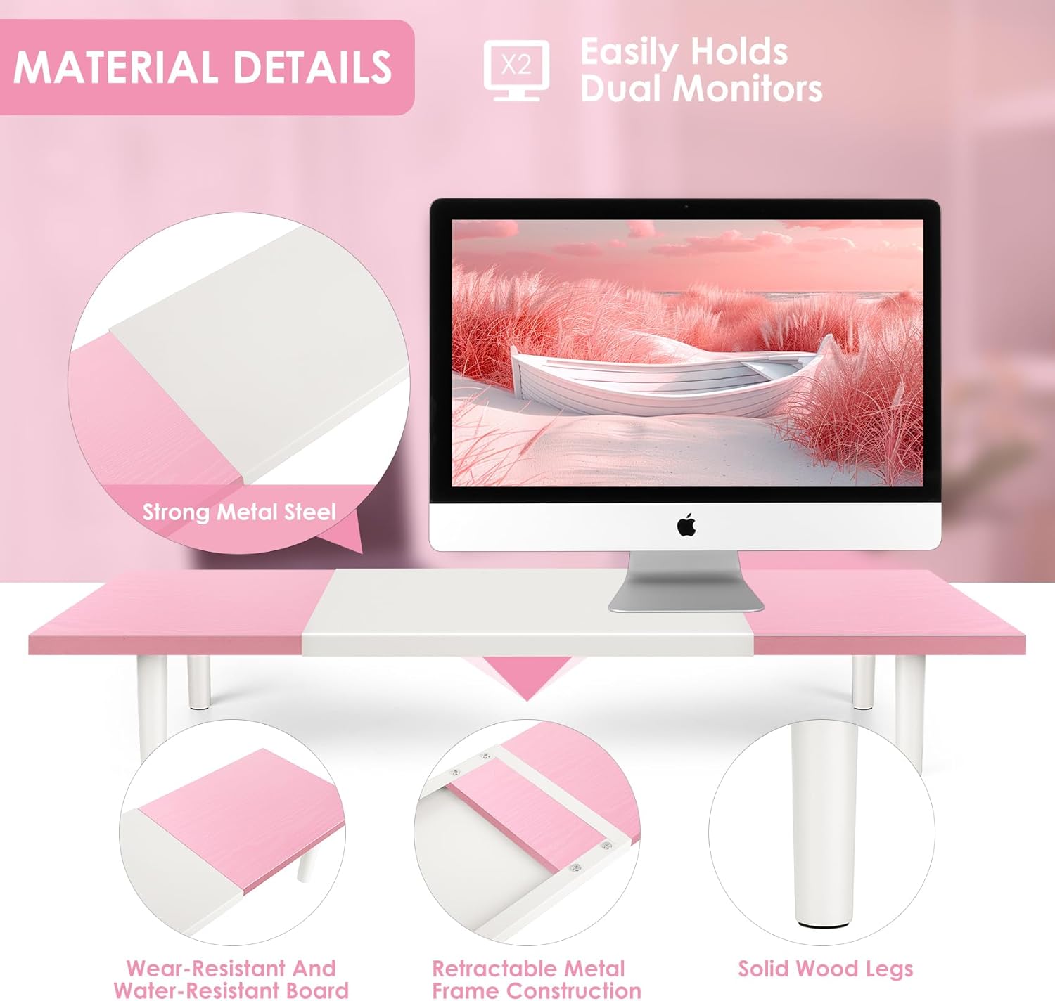 - ADJUSTABLE LENGTH MONITOR STAND: The length of the dual monitor riser for desk can be retractable from 32 in to 40 inch, you can flexibly adjust length according to the space and the different size of screen. You could adjust to the short length when you only need single monitor to save space. Adjusting to the long length if you need multiple computers to work at the same time.
