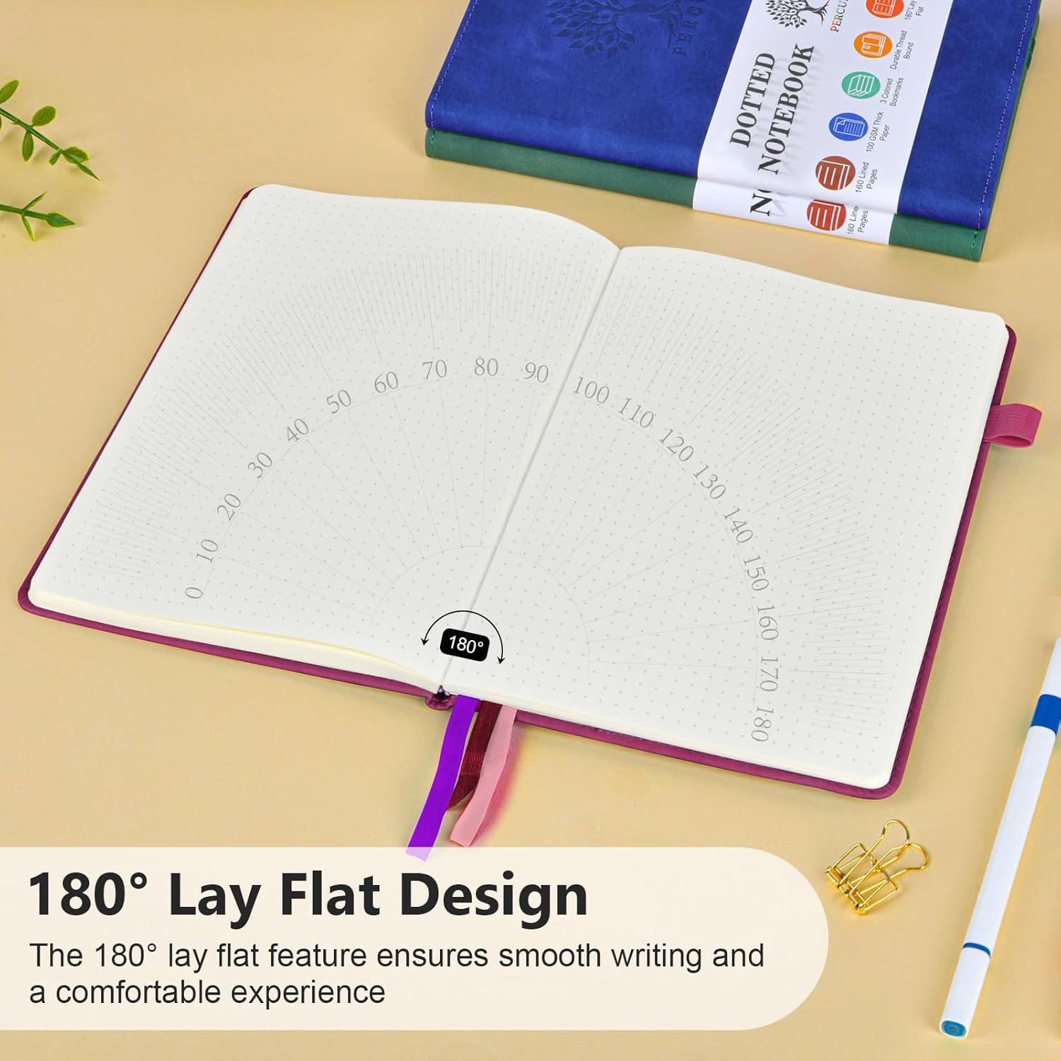 - ăSTURDY HARDCOVER & LA-FLAT DESIGNăïŒDesigned for daily use, this hardcover notebook boasts a lay-flat binding that opens 180° for effortless writing. Its professional finish suits both office desks and travel bags, while the reinforced spine ensures long-term durability.