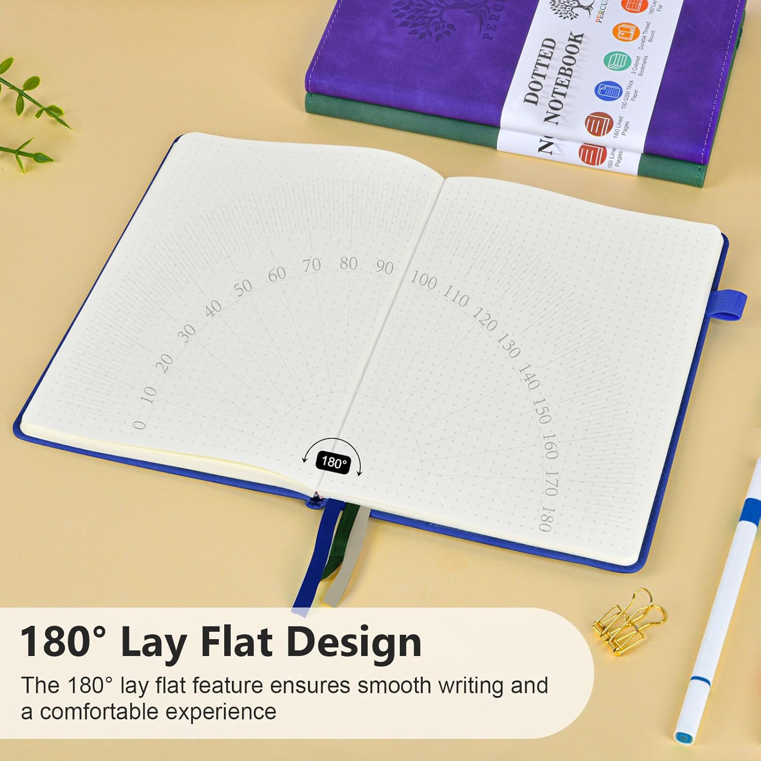 - ă160 PAGES PREMIUM DOTTED NOTEBOOKă:PERCUN A5 dotted journal features 160 pages of smooth, acid-free dotted grid paper (5.9â x 8.5â), ideal for bullet journaling, note-taking, sketching, and planning. The thick 100 GSM paper resists ghosting and bleed-through, ensuring your ideas stay crisp with pens, markers, or fountain inks.