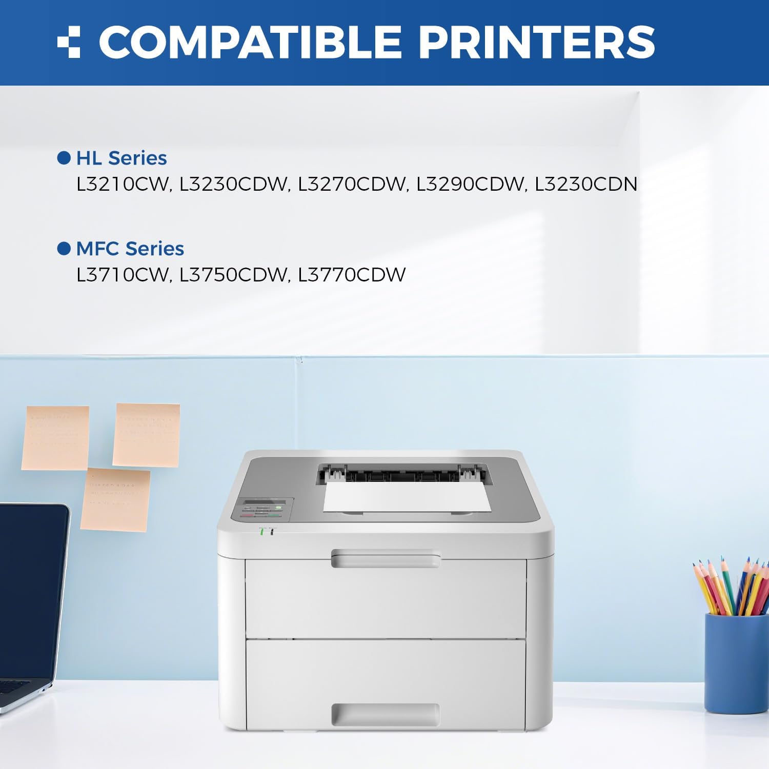 - To use with: Compatible for Brother HL-L3210CW, HL-L3230CDW, HL-L3270CDW, HL-L3290CDW, HL-L3230CDN, MFC-L3710CW, MFC-L3750CDW, MFC-L3770CDW Laser Printer.