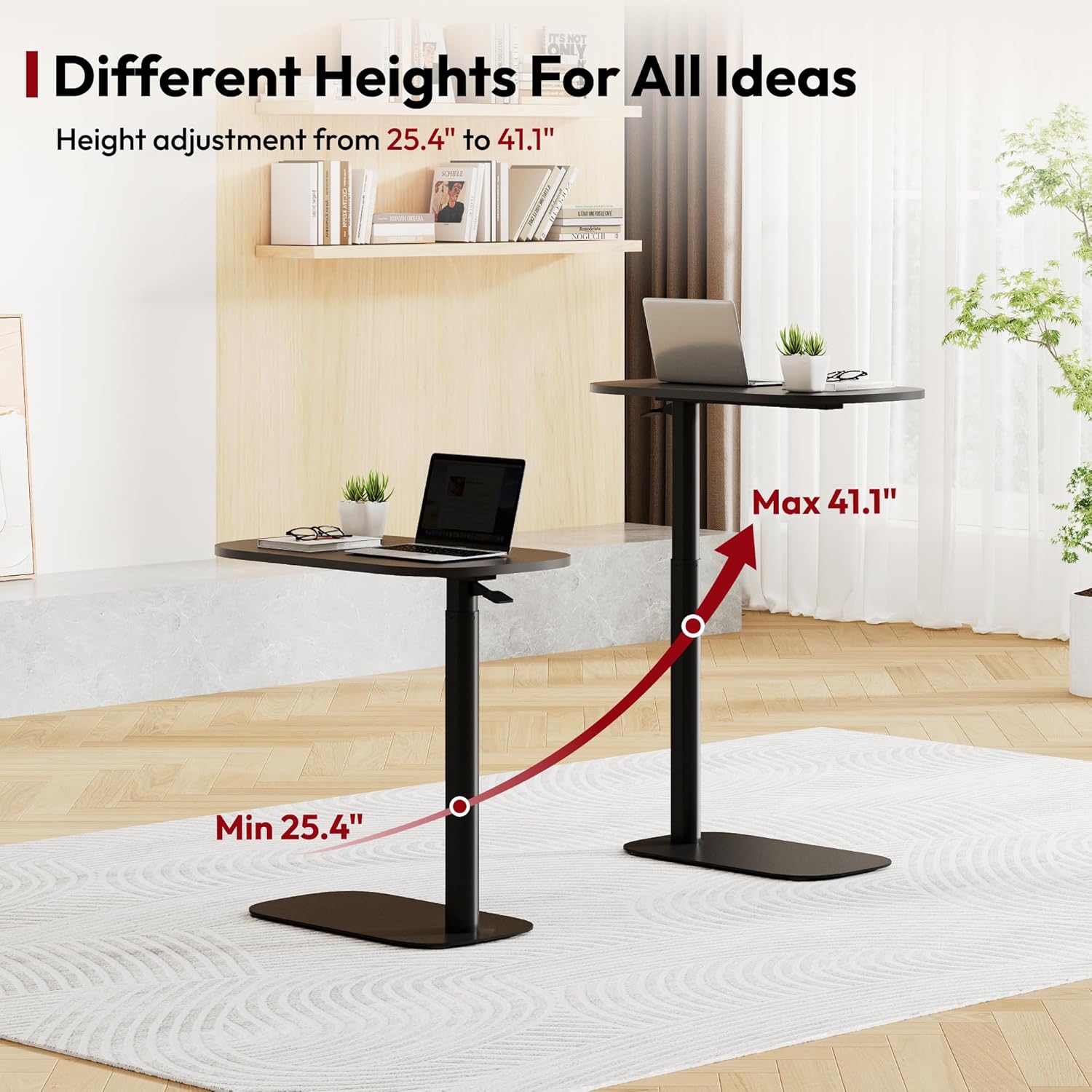 - Adjustable Height Desk for Sitting or Standing Comfort:Enjoy ergonomic flexibility with a gas spring pneumatic lift system that adjusts smoothly from 25.4" to 41.6" using just one hand. Whether you’re working at a small standing desk or converting it into a mobile desk for your laptop, find your ideal posture without bending or straining.