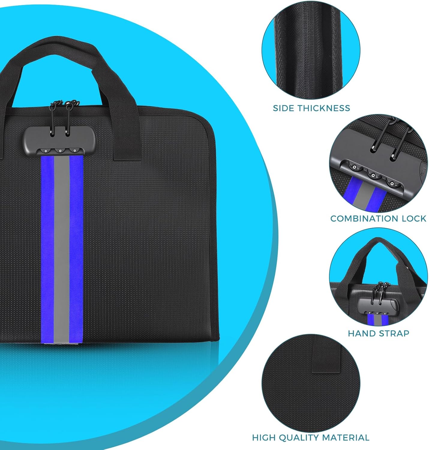 - High-Quality Materials:Fireproof expanding file organizer made of 3-layered silicone-coated fiberglass, withstands extreme temperatures up to 2500β has passed SGS testing(UL94 certified). Protects important documents from fire, flood, and wet weather conditions