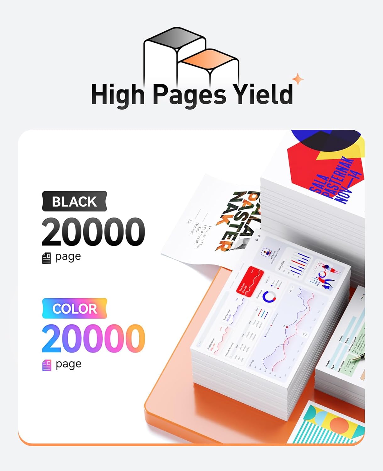 - High Page Yield: Up to 20,000 pages per DR-229CL black Drum Unit,up to 20,000 pages per color (at 5% coverage of A4 Paper),High Yield Version DR229CL.