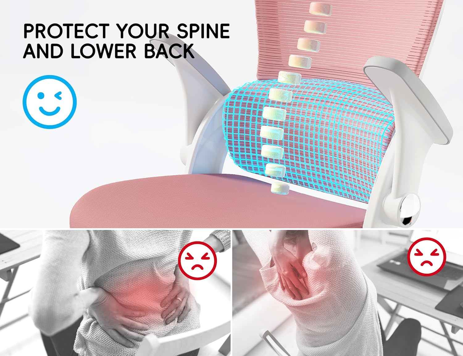 TRALT Office Chair - Ergonomic Office Chair with Back Support, Home Office Desk Chairs, Comfy Desk Chair, Computer Chair, 330lbs Wide Seat Big and Tall Office Chairs for Students (Pink)