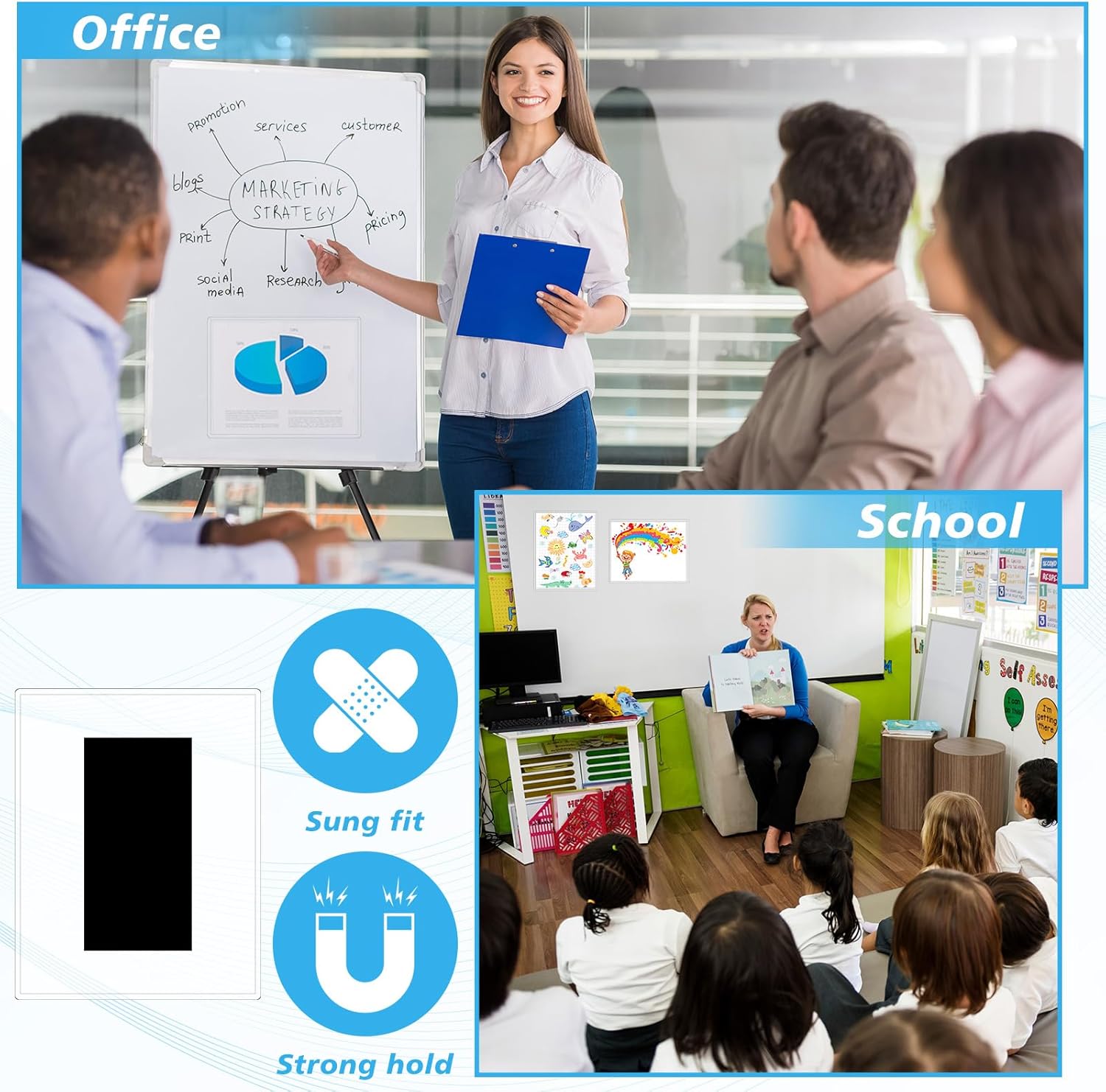- Extensive Usages: these magnetic plastic frames are versatile to use, suitable for restaurants, weddings, Educational, library, offices and even home use, can be applied in stores to display product information; In companies, they can be applied for document announcements and reminder signs; Teachers can use them to display textbooks or student works: they can be applied to store important documents such as certificates, awards, photos, important manuscripts, etc