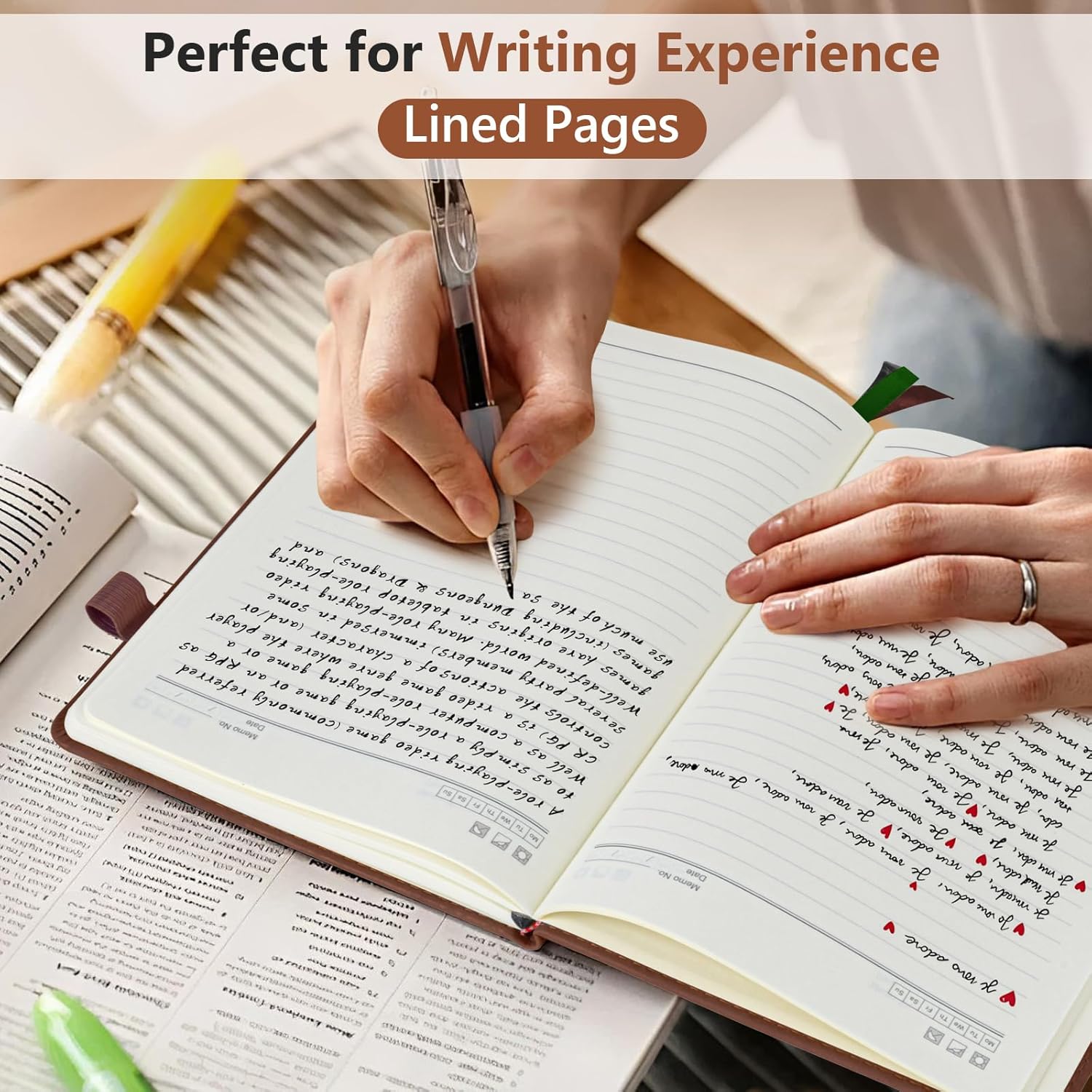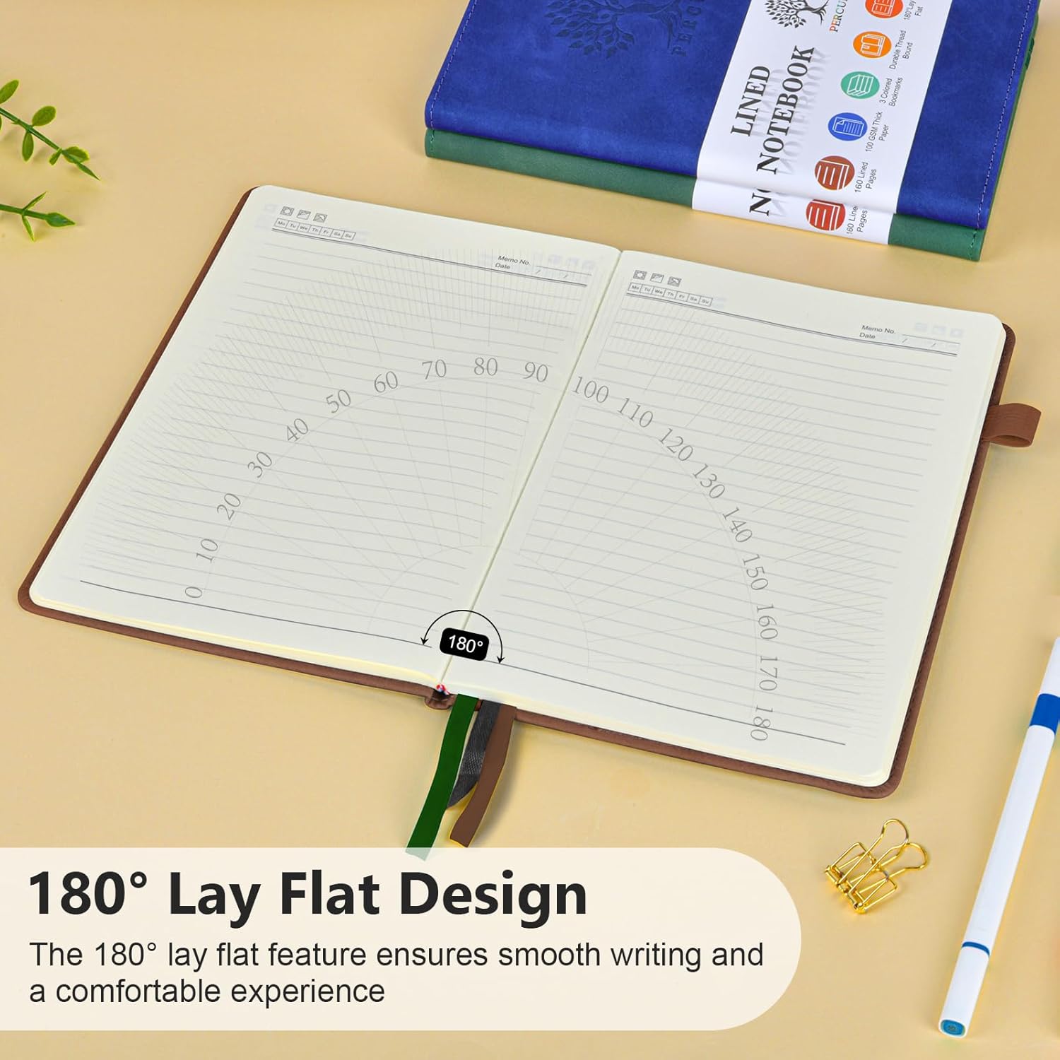 - ă180° LAY FLAT DESIGN & PREMIUM LINED PAPERă: Lay the notebook completely flat for easy writing in any settingâwhether at your desk, in a cafĂ©, or on the go. The 160 pages of 100 GSM lined paper (7mm spacing) offer a smooth writing experience, ideal for journals, work notes, school assignments, or Bible study notes, with minimal ink bleeding or feathering.