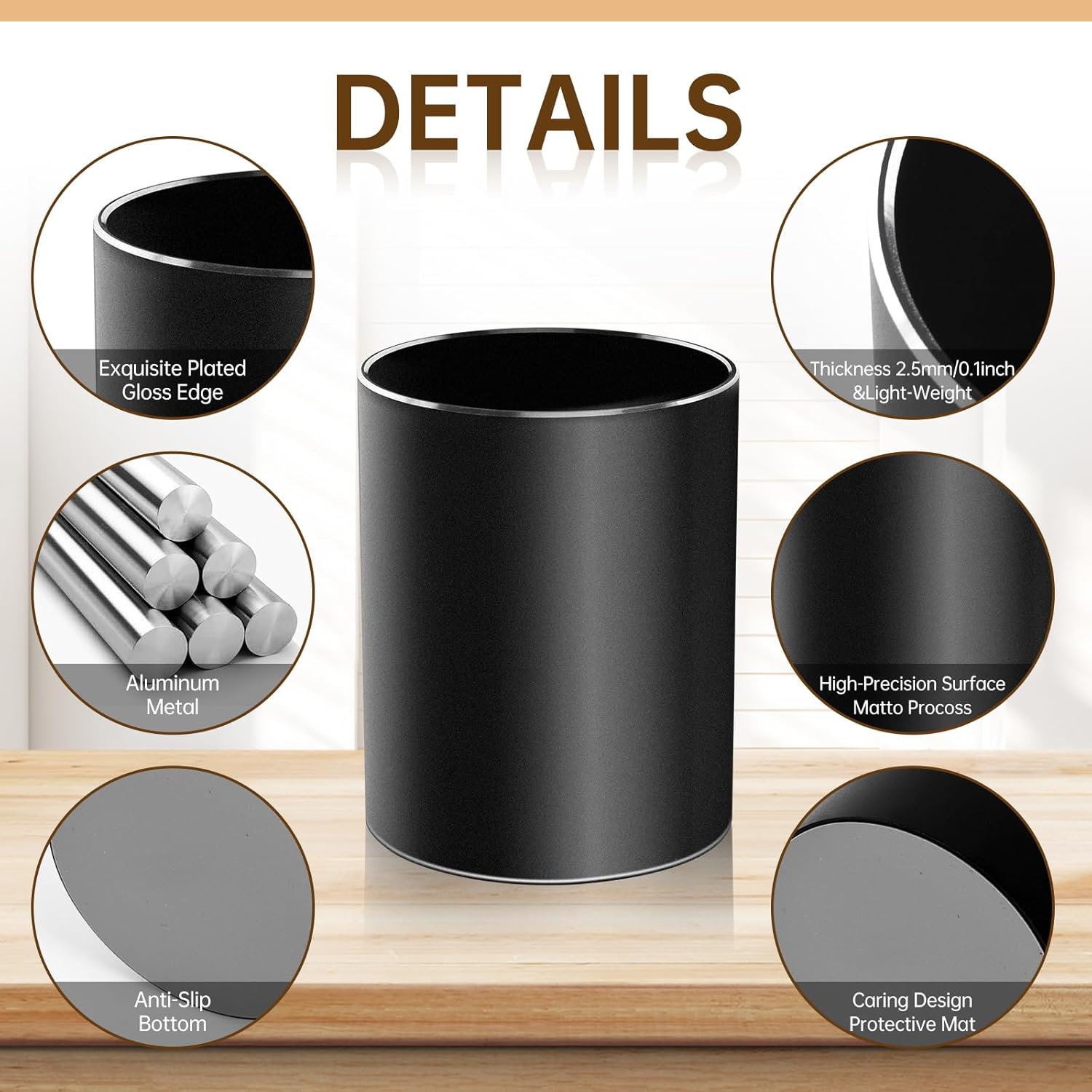 Leader Gifts,Metal Pen Holder Aluminum Pencil Holder for desk,Round Desktop Organizer and Black Pencil Cup for Office, School, Home and Stationary Supplies