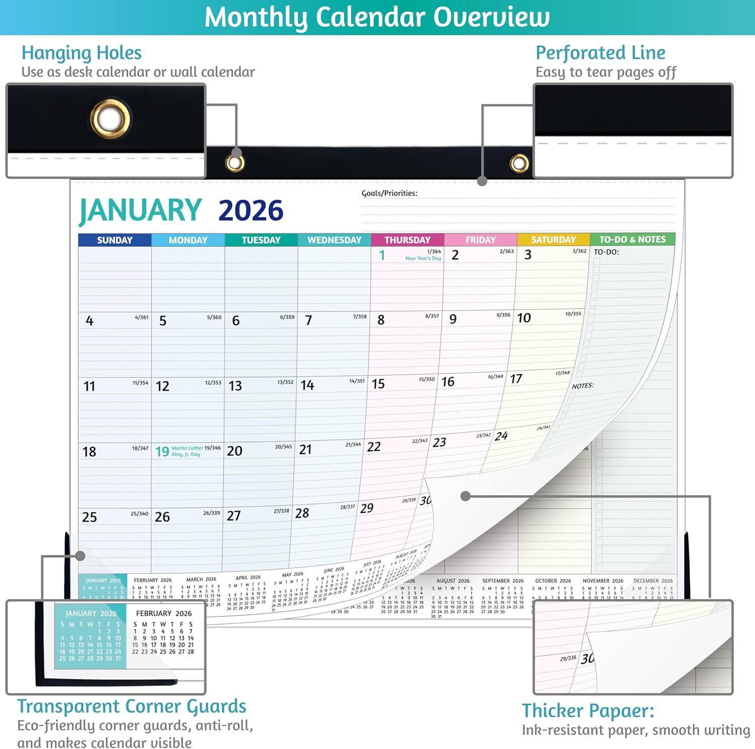 2026 Desk Calendar ā Large Desk Calendar 2026, 22'' x 17'', Jan 2026 ā Dec 2026, 2026 Desk/Wall Calendar with Desk Pad, To-do Lists, Ruled Blocks, Corner Protectors, Lay Flat ļ¼ Not Rolled
