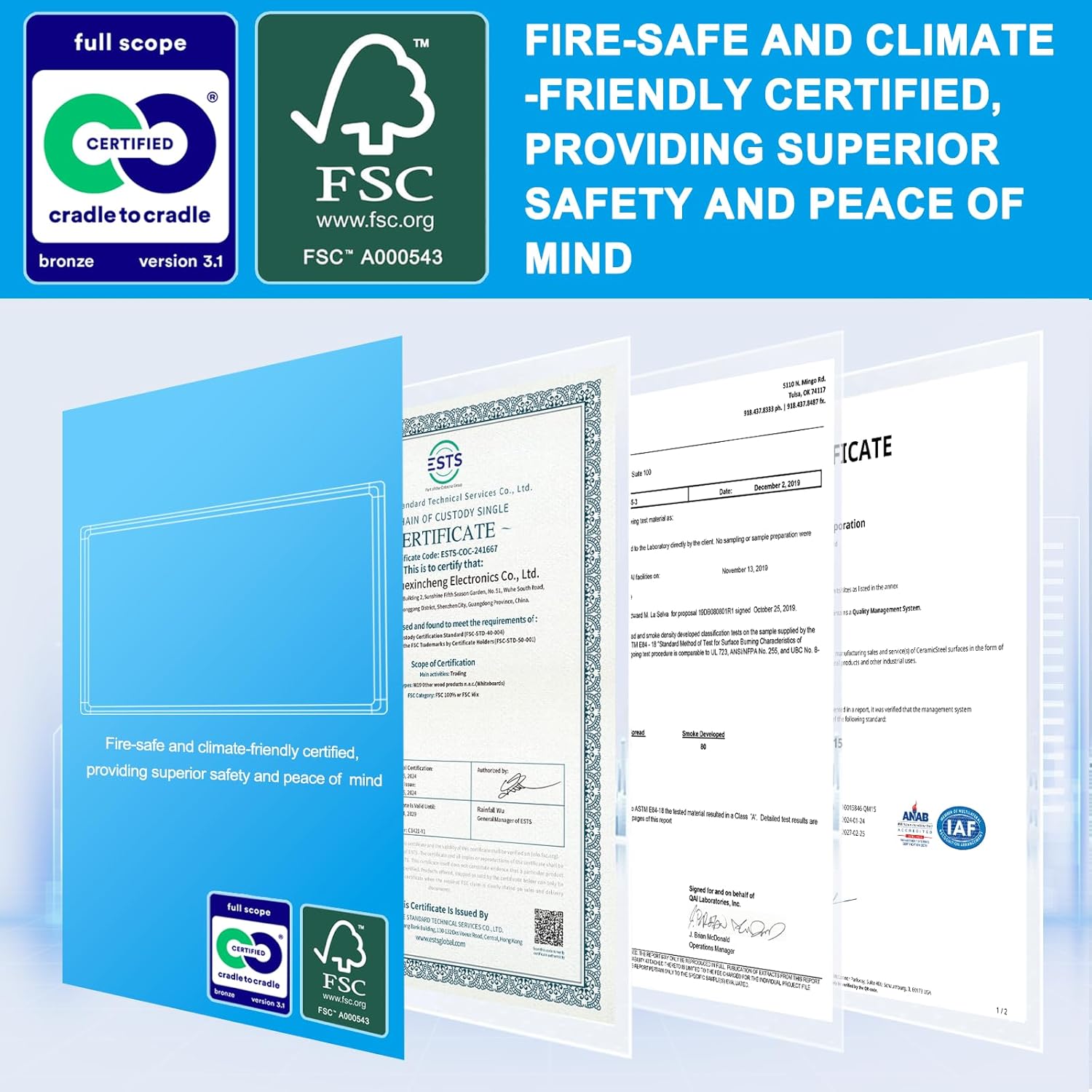 - ✔ CERTIFIED SAFE & SUSTAINABLE – Features both climate-friendly eco-certification and a fireproof-rated magnetic surface (certifications included), making it ideal for schools, government agencies, and corporate environments.
