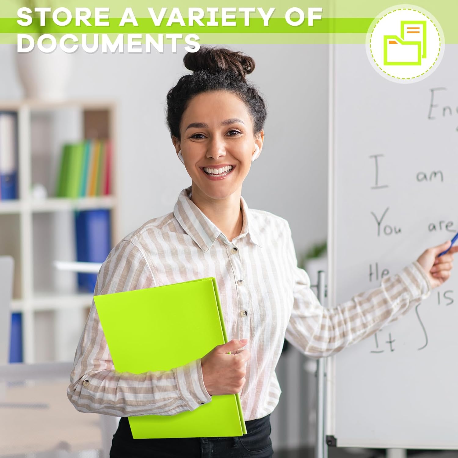 Henoyso 72 Pcs Plastic Folder with Clear Front Pocket and 3 Prong Plastic Folders with Card Slot Pocket Folders with Prongs for School Office (Fluorescent Green)