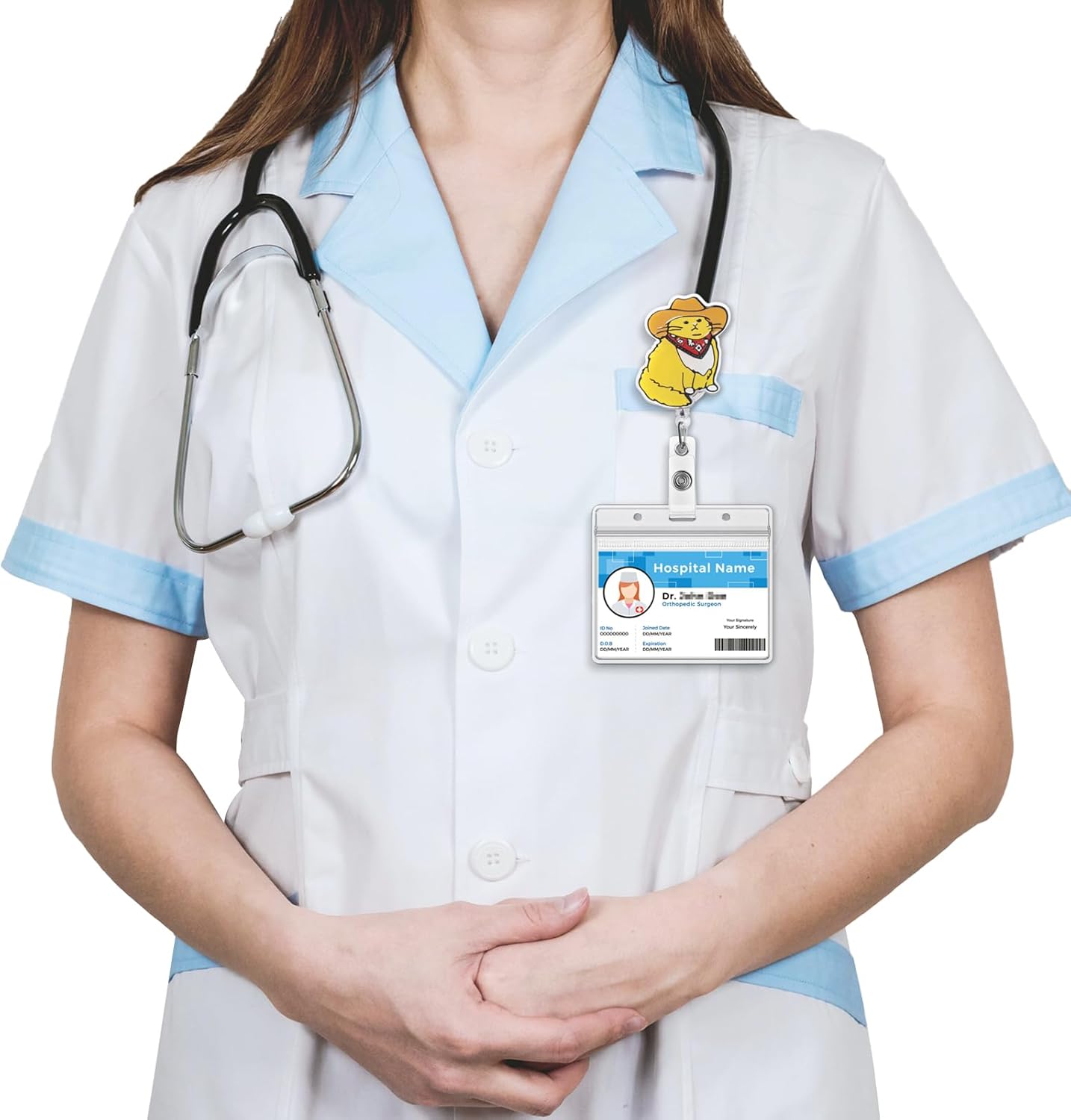 - VERSATILE & PRACTICAL: Whether you’re a nurse, medical assistant, teacher, or office woker, student, social worker and so on , this waterproof cute ID card badge adds personality to uniforms. Lightweight and sanitizer-resistant, it’s essential accessories for you..