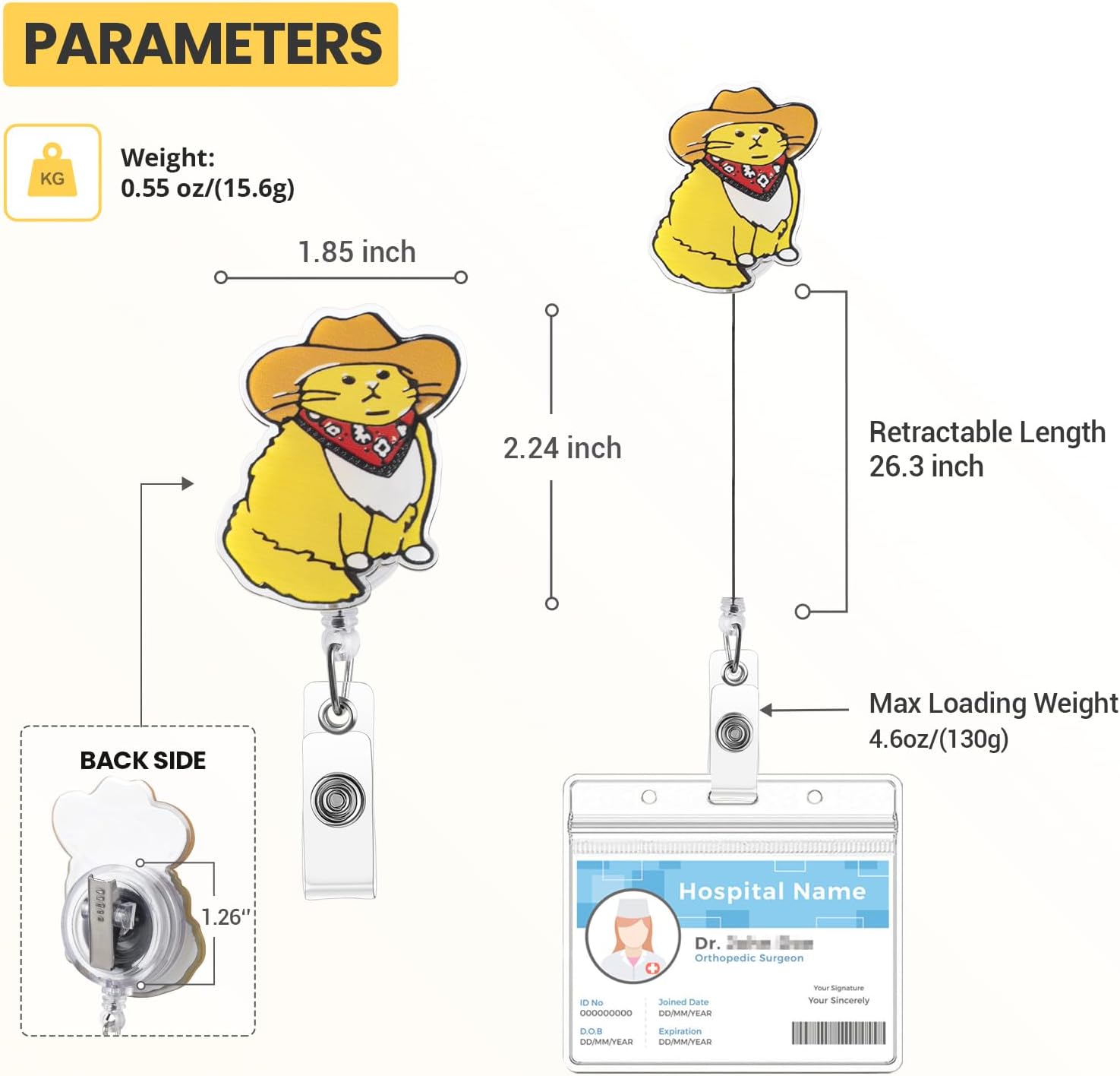 - Funny Cowboy Cat DESIGN: This cute badge reel features an adorable cowboy cat design that adds cuteness and fun to your uniform. A perfect retractable badge holder cute accessory that will bring you joy every time you clip it to your work uniform.