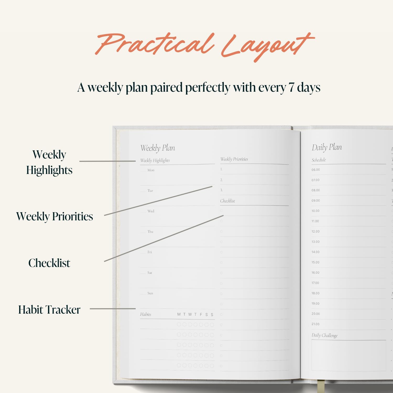 Yop & Tom Undated Daily Planner (A5) - Productivity Planner - Weekly and Daily Organizer with Time Slots - Cowboy Boots