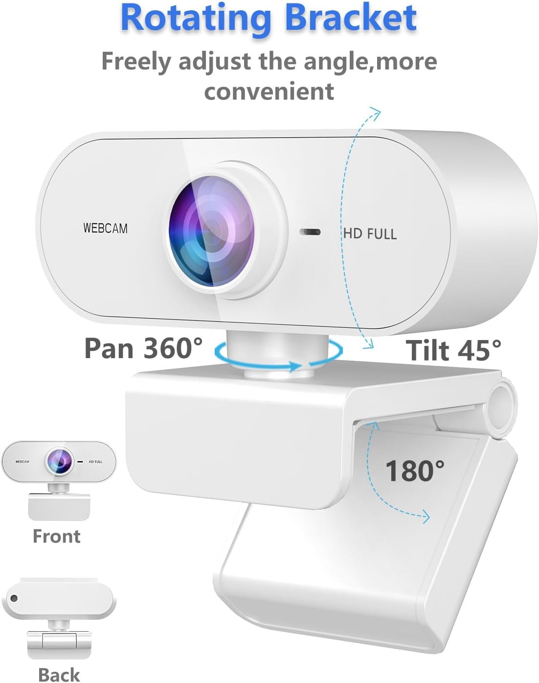 - 【1080P HD Webcam With Adjustable】FWV web cameras for computers has 1080P resolution, Webcam with microphone comes with a full HD glass lens, giving you stunning clarity and detail. The glass lens of web cam captures sharp images to provide consistent high-definition quality. Reduce particles and bring details in the dark environment. Provide you with excellent, undistorted images