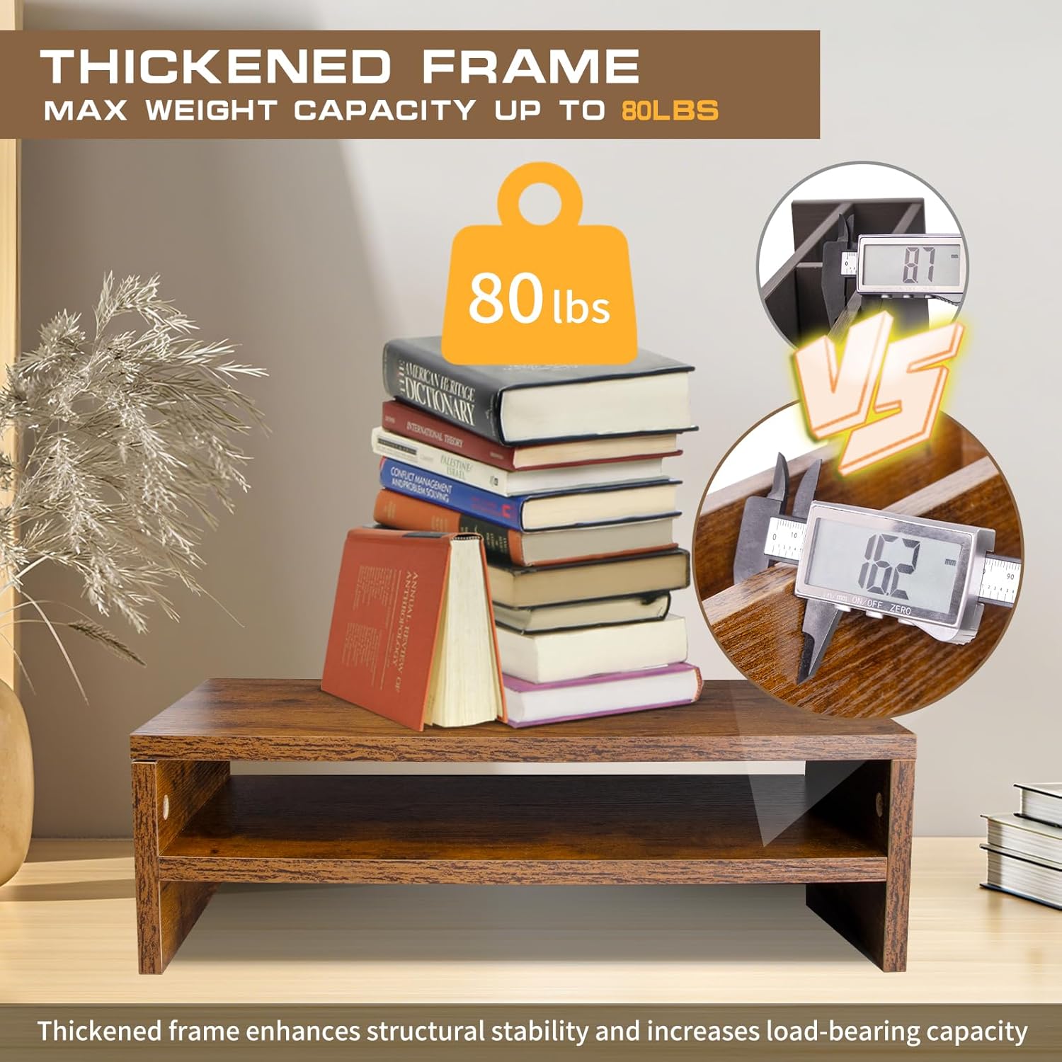 - Sturdy and Reliable Construction:Engineered to support up to 80 lbs, this stand riser provides exceptional stability for your office essentials. The reinforced frame and premium materials ensure long-lasting durability. The wooden monitor riser features soft rubber feet that provide complete stability for your display while protecting your desktop from scratches.