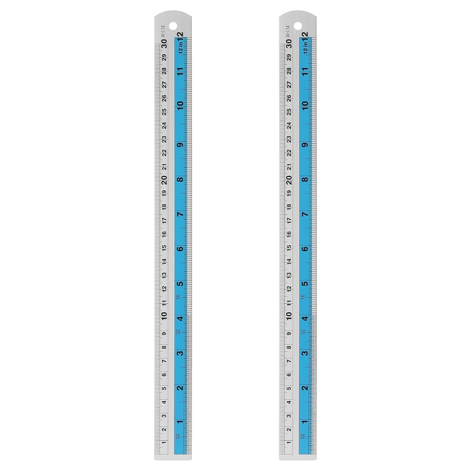 HARFINGTON 2pcs Metal Straight Ruler 30cm Metric SAE Aluminum Alloy Measuring Rulers Scale Tools with Hole for Measure Study Reading Classroom Office, Blue