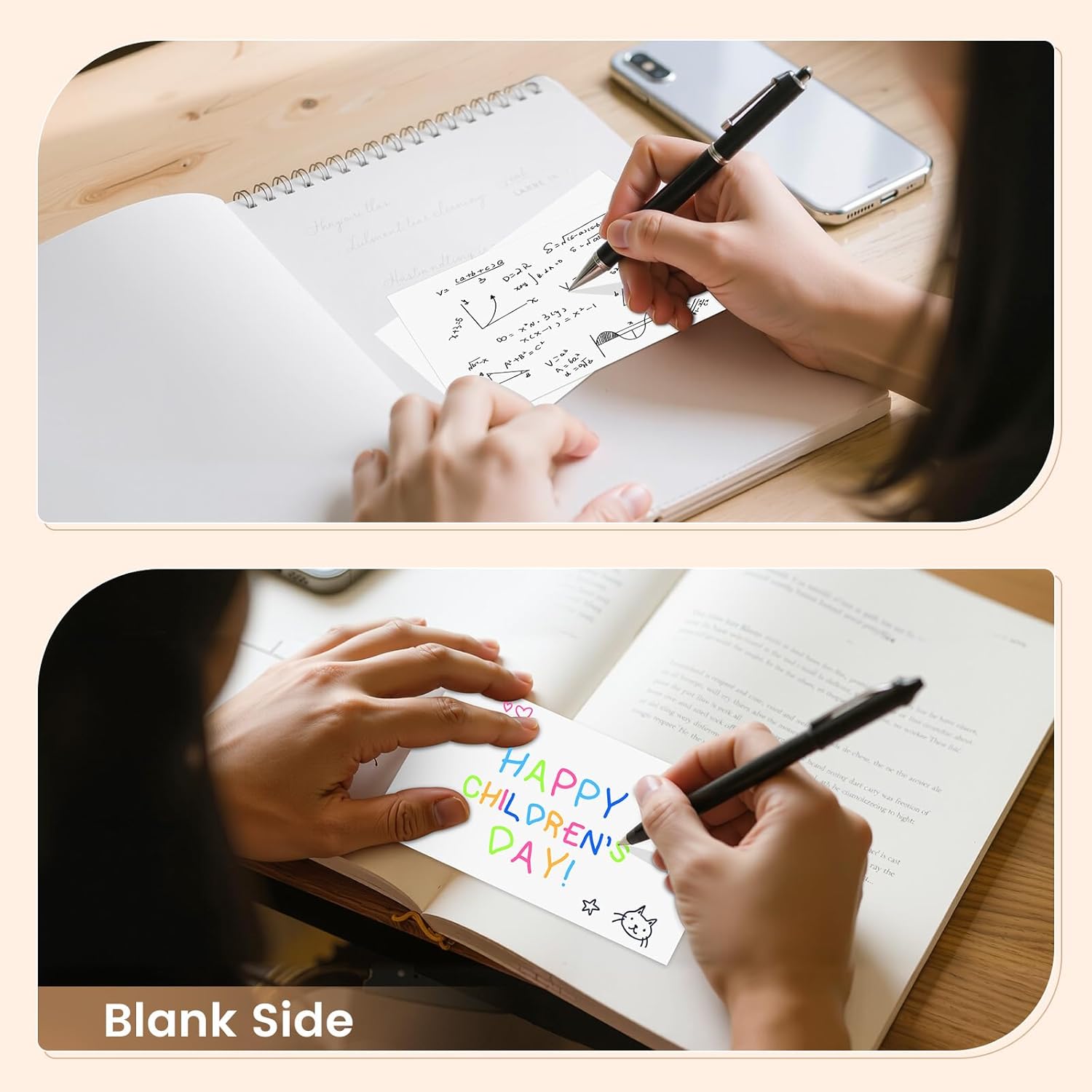 - DOUBLE SIDE BLANK DESIGN:The mini note cards have the blank side for writing(taking notes, sketches, mathematical equations,drawing pictures and more) ,which is perfect for organizing information.