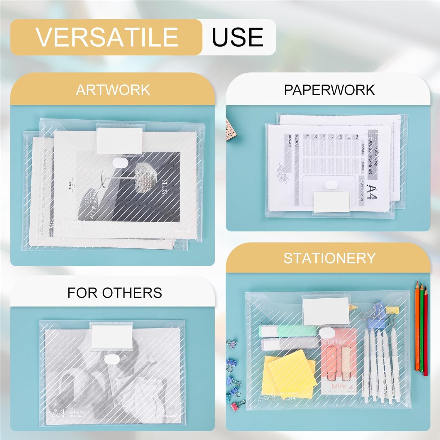 - 【Fits Letter & A4 Sizes】Made of fully transparent plastic, these envelopes allow you to instantly view and identify contents without opening. Each folder measures 12.75" x 9.12", perfectly sized for A4/US letter-size papers and offers ample storage space for everyday use.