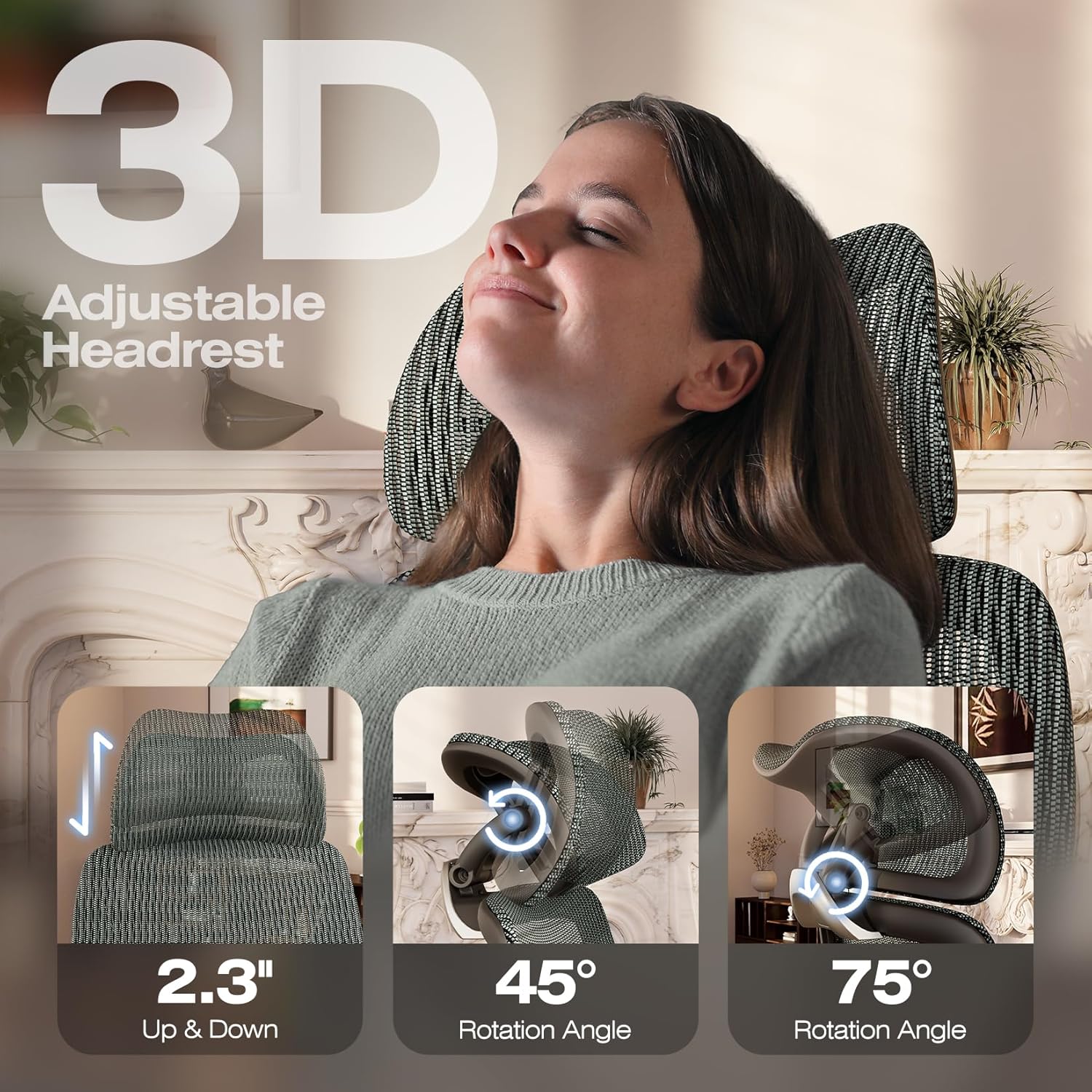 - 【Advanced Adjustability】 3-stage reclining mechanism pairs with an 18" extendable footrest (2-position angle adjustment) for seamless transition between work mode and relaxation in home office desk chairs, while 28cm³ 3D AirFloat Headrest with cervical curve mapping reduces 31% neck strain