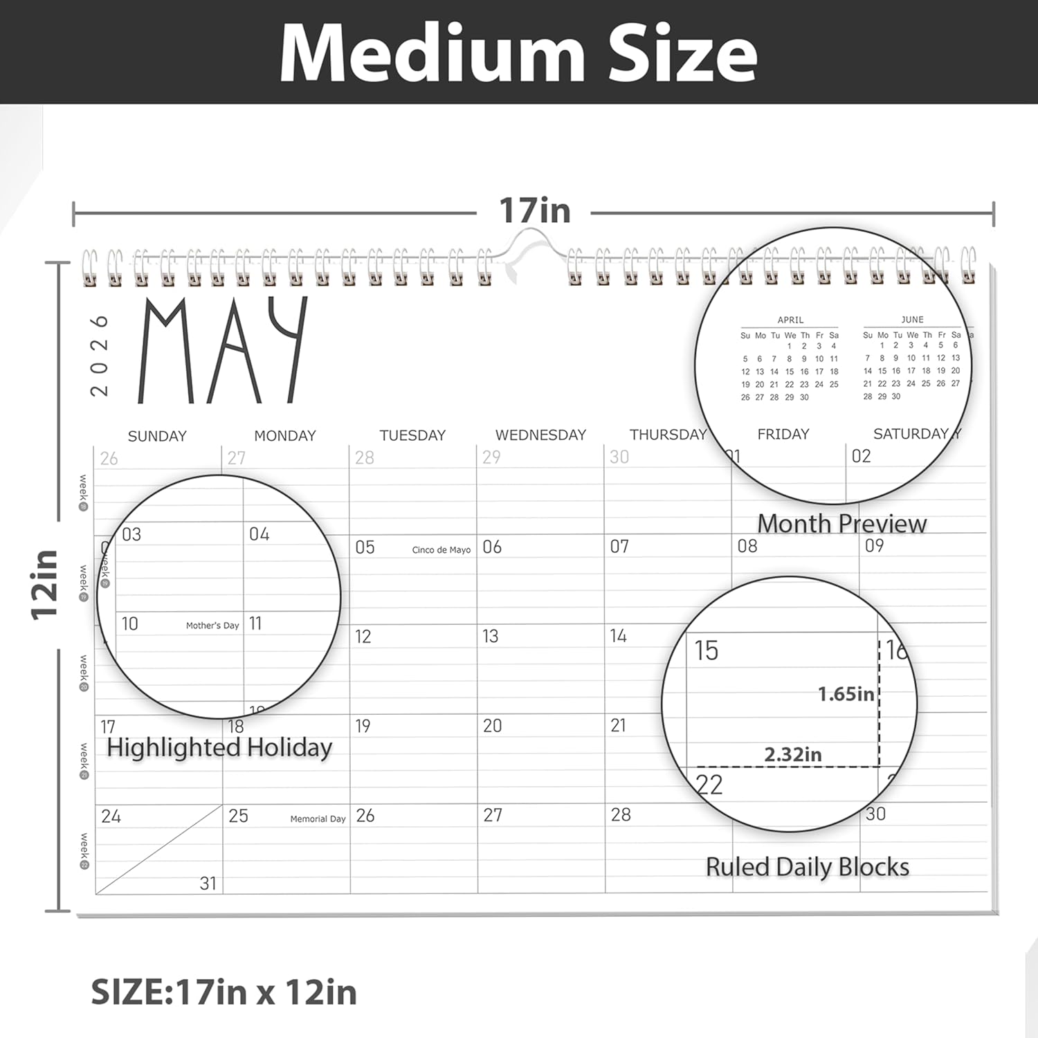- Large Format, Easy to Read: Measuring 17" x 12", this large wall calendar doubles as a desk calendar 2026-2027, providing plenty of space to write down appointments, deadlines, and reminders. Each date block is clearly outlined with writing lines, helping you stay neat and organized. It’s a great choice for professionals, parents, and anyone who needs extra visual space to stay on top of their schedule.