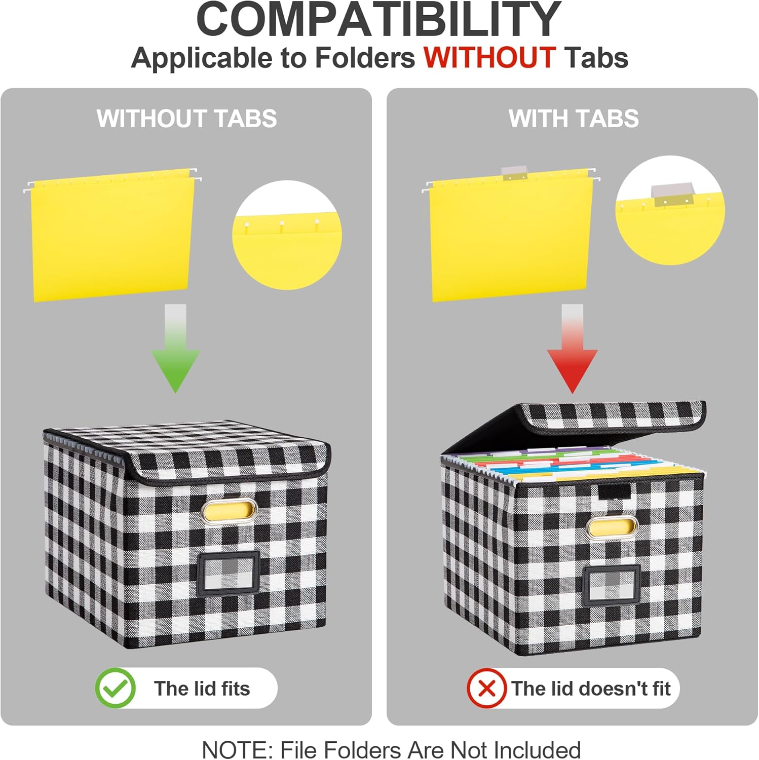 File Organizer Box, Linen Filing Organizer with Lid, Large Desktop File Boxes, Black and White Lattice,2 Pack