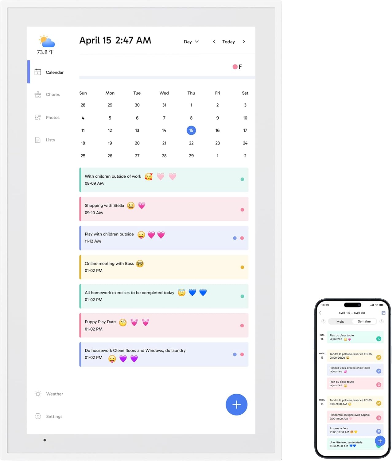 - 【Interactive Chores Chart & Dinner Planner】: Our digital calendar keeps housework organized and motivates family members, especially children, to develop healthy habits with an interactive chore chart. Display your family dinner plans to keep everyone informed and eliminate the daily "What's for dinner?" question.