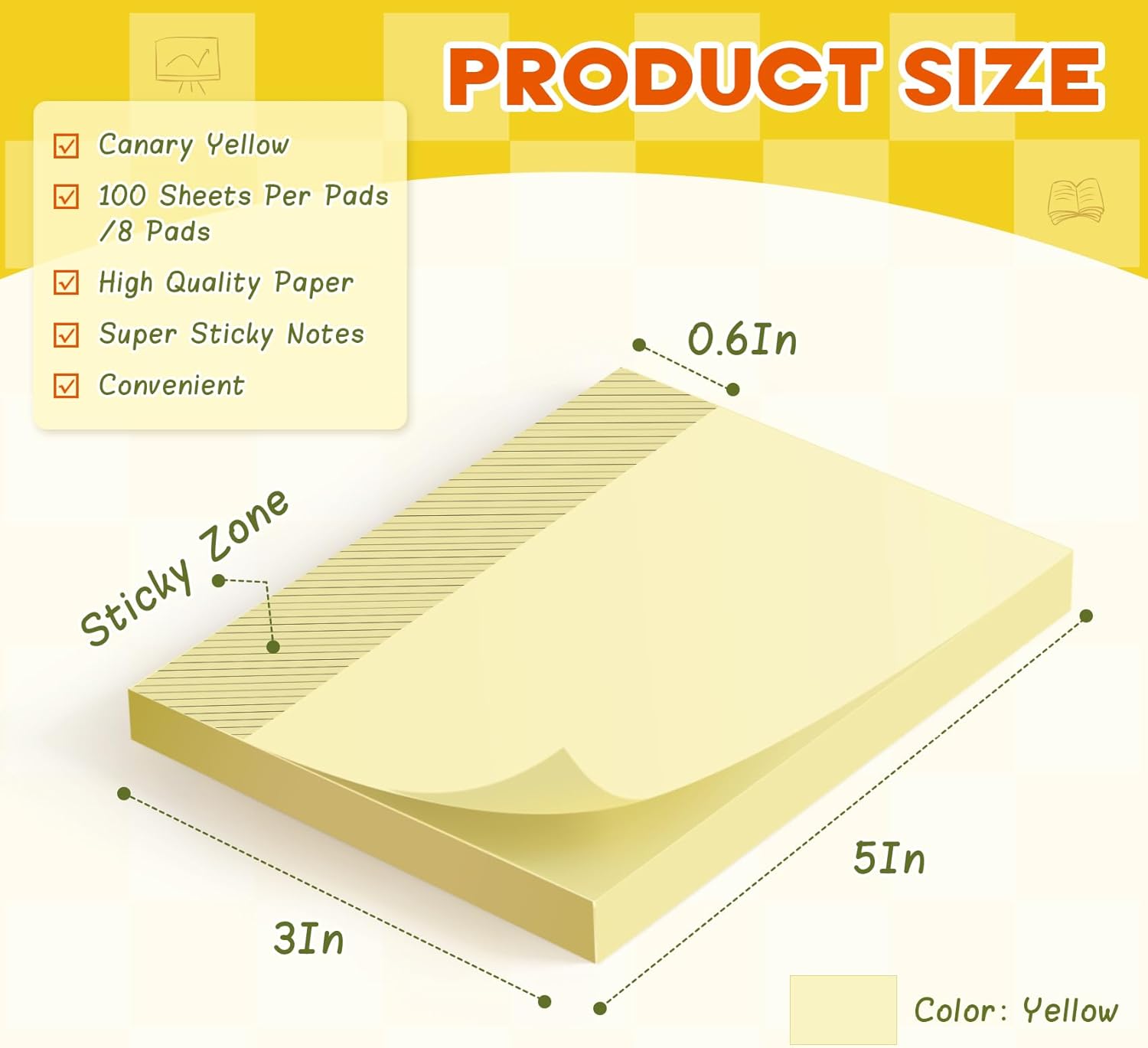 • Canary Yellow to Grab Attention: Yellow sticky notes instantly catch your eye, making critical tasks or ideas stand out. Refresh your workspace with this energizing color that sparks focus and creativity—ideal for organizing projects, study sessions, or family reminders!