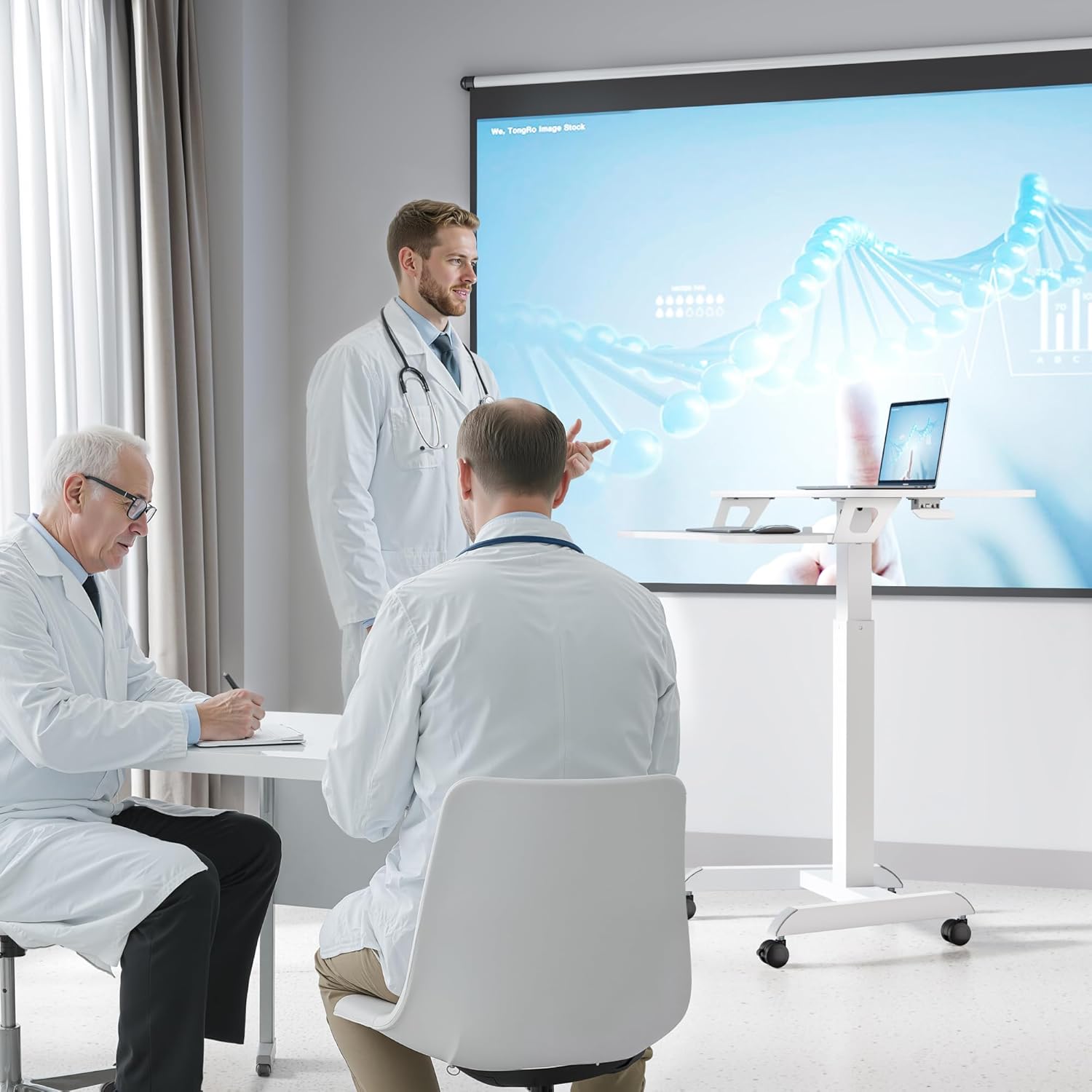 - 【Spacious Comfort Boost】This mobile laptop stand offers 30% more space than standard small desks, featuring a generous 31.2"L × 27.5"W tabletop. Whether you're using a laptop, taking notes, or keeping your favorite mug nearby, you'll have ample room to stay organized, reduce clutter, and maintain focus. After hours of sitting, effortlessly raise your adjustable table with wheels up to 47.2 inches. This rolling desk can serve as an extension to other desktops whenever needed.
