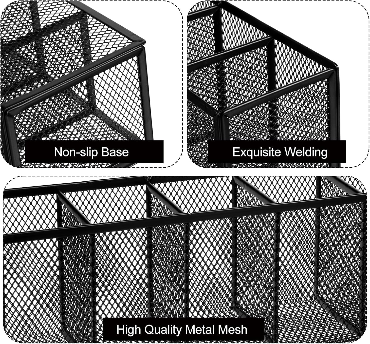2 Pcs Black Metal Mesh Desk Organizer Pen Holder 6 Compartments Pencil Holder for Desk, pen organizer for Office Supplies, Pencil Caddy, Makeup Brush Storage, Home and Classroom Accessories