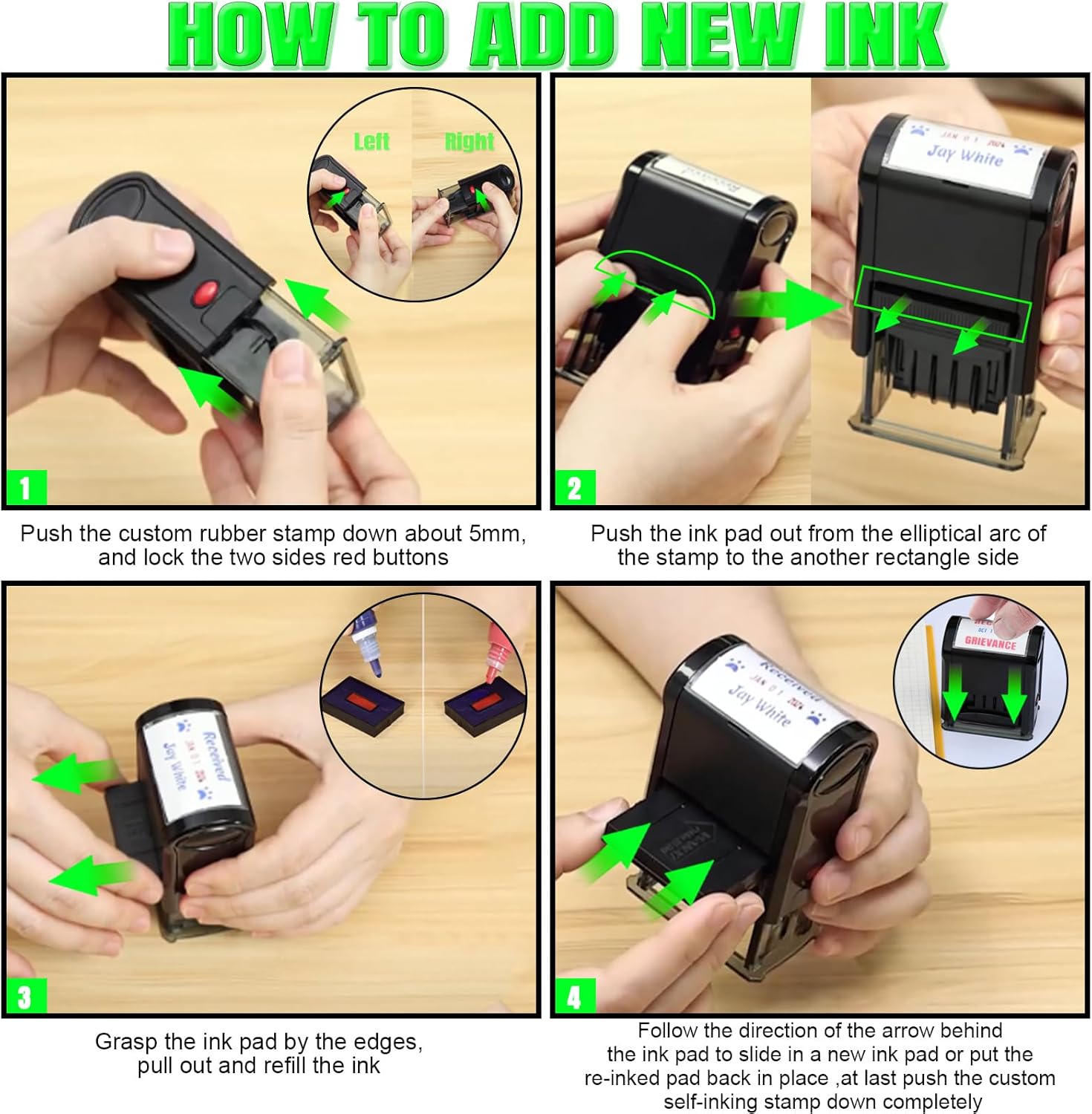 - 【Custom Parent Stamps with Date】:High quality self inking personalized to the parents of stamp with date could mark thousands of smooth impressions before ink needs to be refilled.When the impressions begins to fade,the ink pads could replaceable or re-inkable.Simply push teacher stamp with date down about 5mm,and lock the two sides red buttons,slide ink pad out to refill the ink,reinsert,and push the teacher stamp down completely.Superior ABS durable plastic frame for long lasting durability