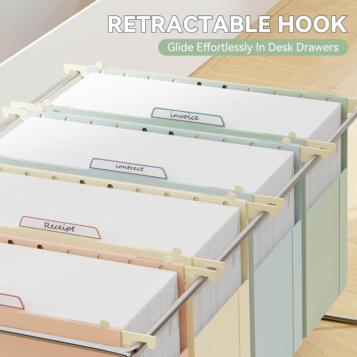 - 【EASY ACCESS】:The large capacity hanging file folders with colorful labels help locate files quickly,12 insertable and adjustable labels,not easily bent or dropped,helps you stay organized.