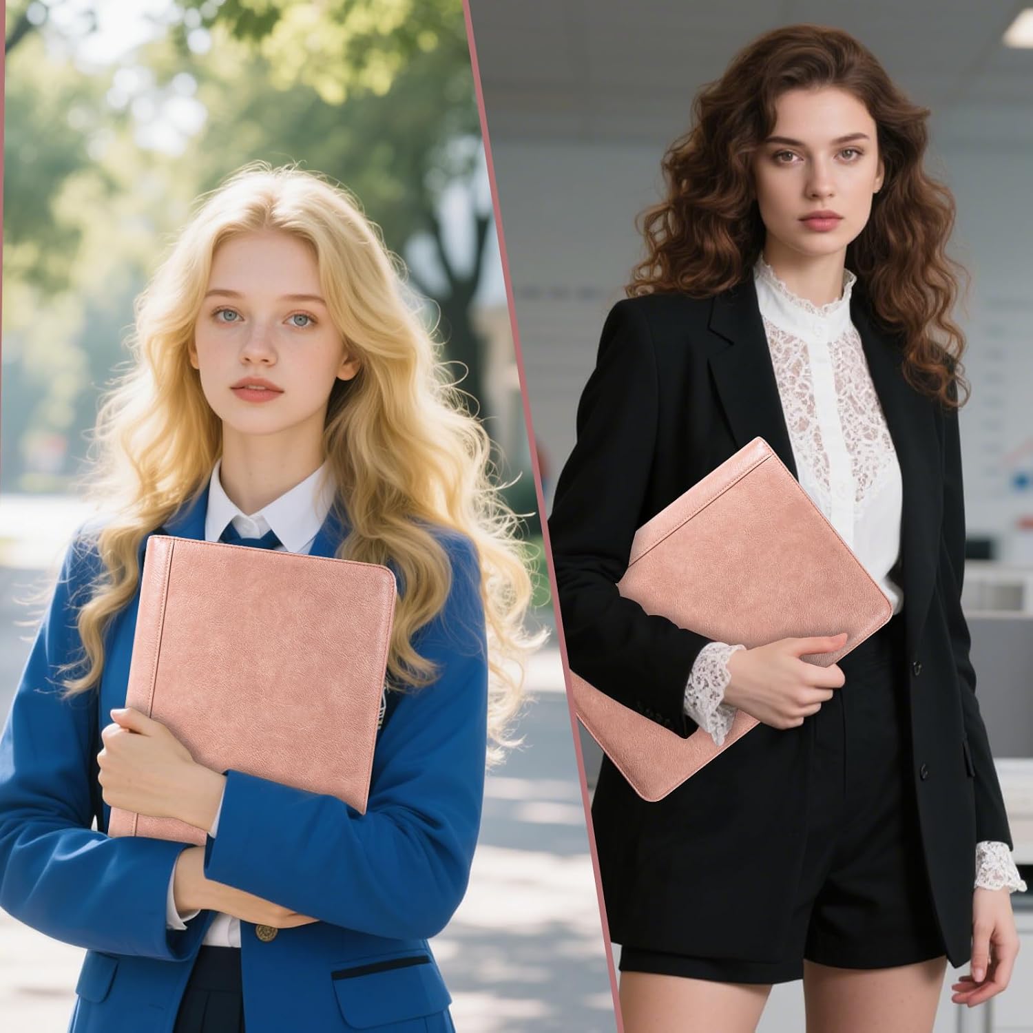- 【Premium&Stylish-Leather Portfolio Binder】 This personalized portfolio organizer is handmade from leather, waterproof and durable while balancing elegance and fashion. Brown, vintage brown and black portfolio for men are simple and atmospheric. The padfolio for women with rose gold and deep blue print is elegant and exquisite. The Calfinder business portfolio is the perfect gift choice for lawyers, teachers, graduates, employees, and any other professionals.