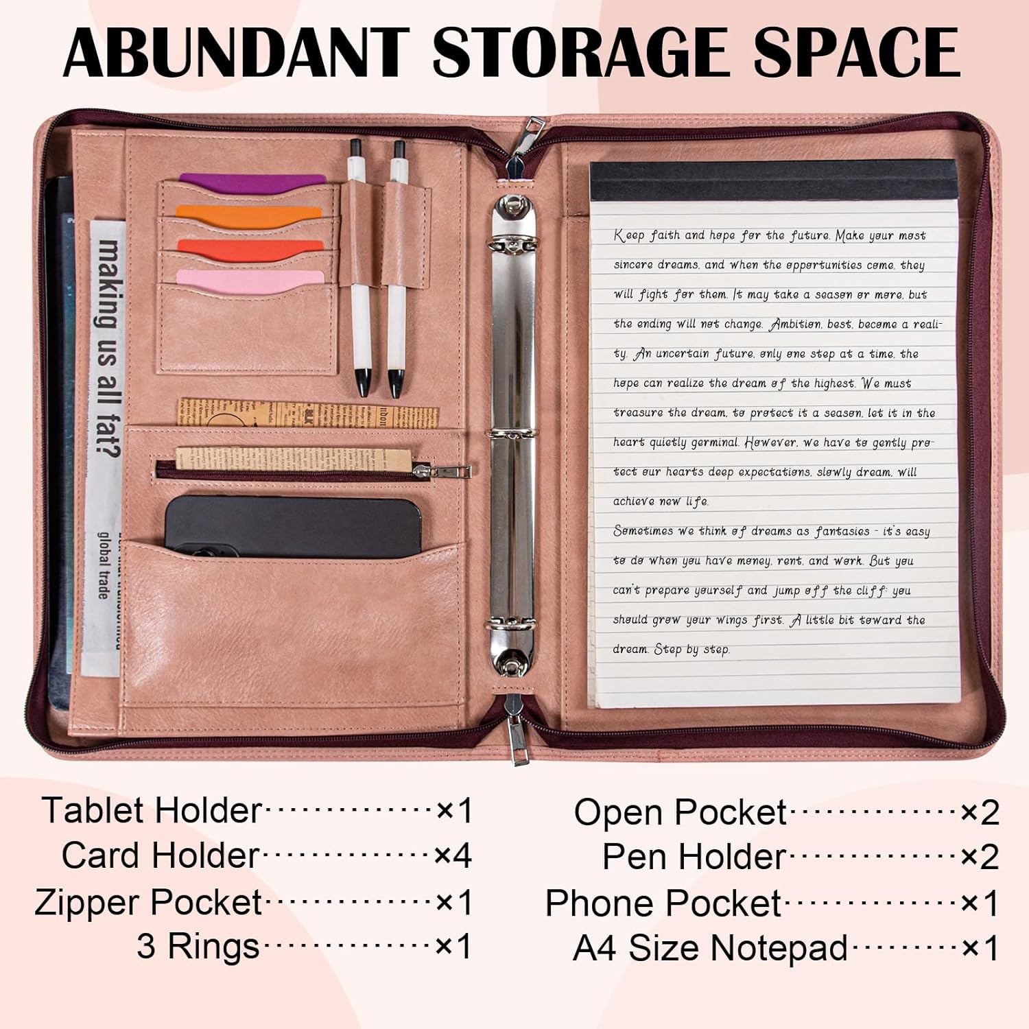 Calfinder Personalized Padfolios Portfolio Binder,3 Ring Leather Binder with Zipper,Professional Padfolios for Women&Men, Business Portfolio Organizer for Resume, Leather Folder for Ipad